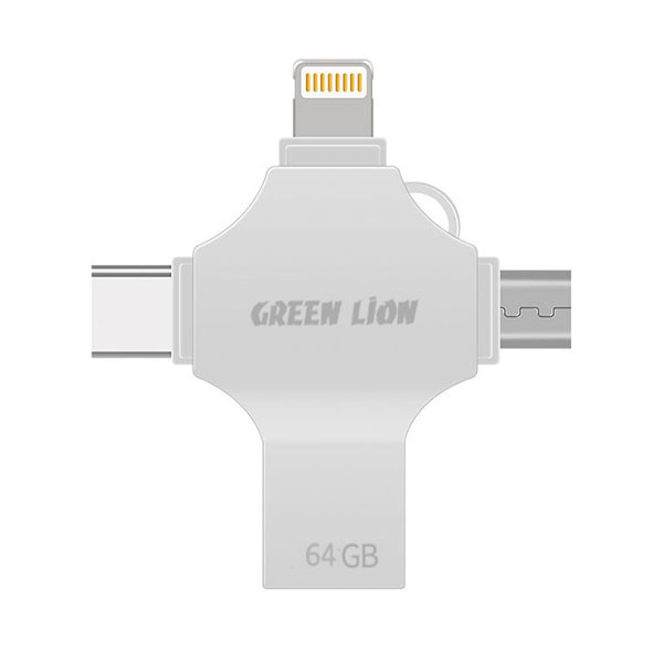 فلش مموری گرین لاین مدل FD-4 IN 1 ظرفیت 64 گیگابایت با رابط microUSB، USB، USB Type-C، لایتنینگ