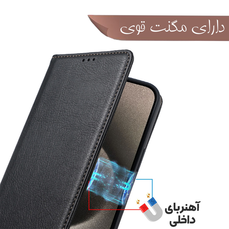دارای محفظه نگهداری کارت , قابلیت تبدیل شدن به استند , دارای قفل آهنربایی , پشتیبانی از شارژ بیسیم , مقاوم در برابر خط و خش , لبه های برجسته برای محافظت دوربین , لبه های برجسته برای محافظت صفحه نمایش