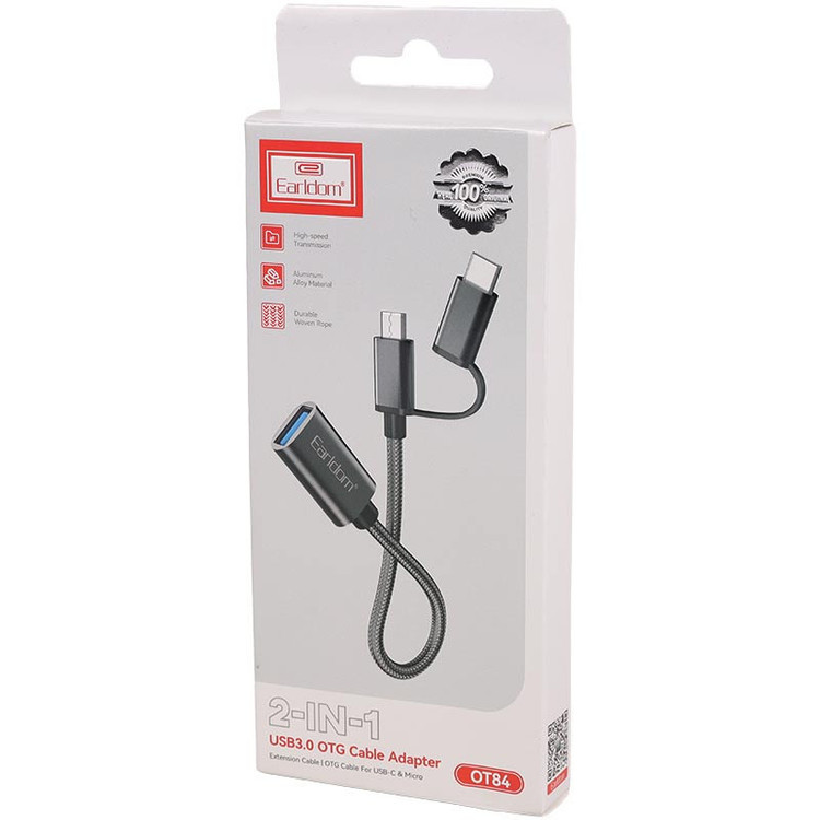 Earldom Model ET-OT84 Dual OTG Adapter | USB-A to Micro USB & USB-C Converter