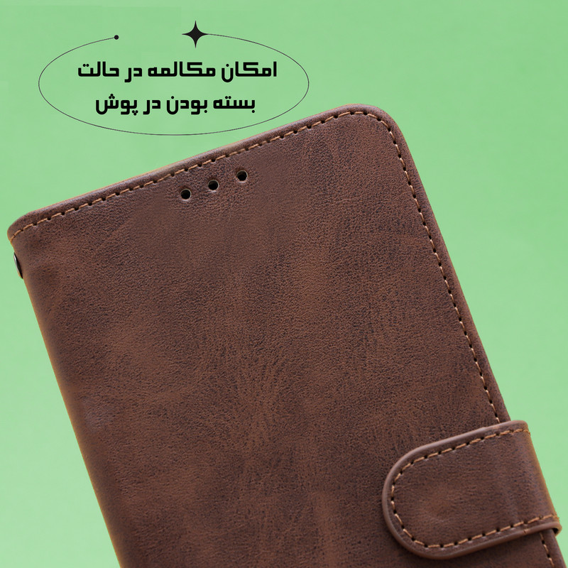 کیف کلاسوری مدل بنددار یک کیف درجه یک با قابلیت های بالا است که امروزه در بازار ایران عرضه می شود.این کیف از جنس چرم مصنوعی و فوم تشکیل شده و کاملا با دوام و مقاومت بالا ساخته شده است.این کیف از چرم مصنوعی براق ساخته شده برای جلوه بیشتر و متمایز کردنش از بقیه جنس های مشابه در بازار می باشد.قاب داخلی این کیف از جنس TPU ساخته شده و انعطاف پذیری بسیار بالایی دارد.یک قفل مگنتی قوی برای باز نشدن درب کیف شما تهیه شده است.در اصل شما با تهیه این کیف,با یک تیر 3 نشون میزنید:یک قاب یا کاور با کیفیت وزیبا برای تلفن همراه خود تهیه کردین دو دیگ نیازی به خرید محافظ لنز نیست چون این قاب محافظ لنز دوربین هم دارد و گزینه سوم هم اینکه شما صاحب یک کیف پول تمامو کمال شدین چون این کیف دارای بند مجزا ، جای کارت برای کارت های عابر,مترو و ...شما است.دسترسی آسان به درگاه ها,قابلیت تبدیل شدن به استند و بند مچی بسیار قوی از جمله قابلیت های این قاب است.