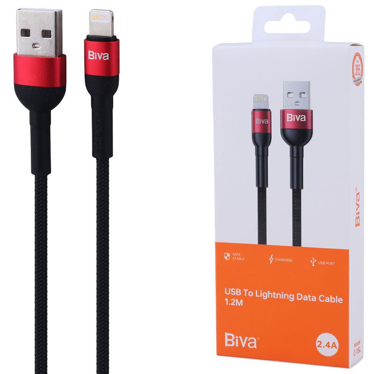 کابل لایتنینگ فست‌شارژ بیوا مدل C-15L | 2.4 آمپر | طول 1.2 متر