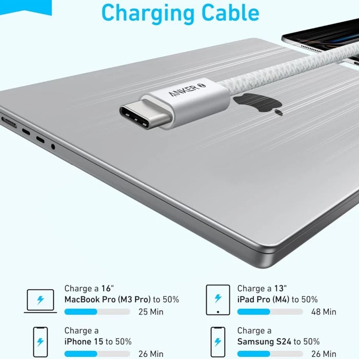 کابل تایپ سی انکر مدل A8060H11 یک کابل فستشارژ حرفهای از برند معتبر آنکر است که از پروتکل Power Delivery (PD) پشتیبانی میکند. این کابل با توان 60 وات و طراحی مقاوم ZOLO، برای شارژ سریع لپتاپها، تبلتها و گوشیهای پرچمدار طراحی شده است.