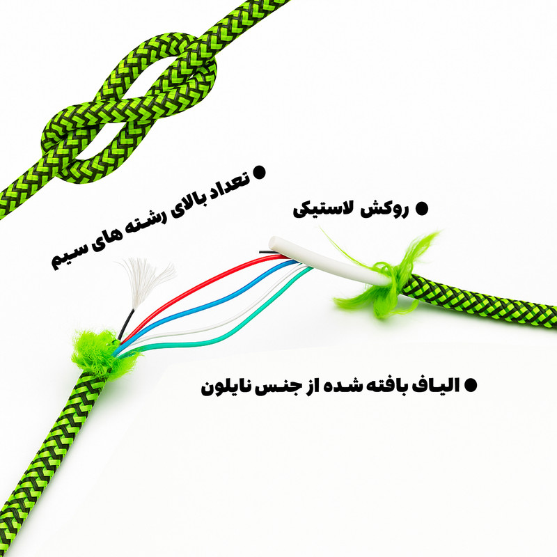 روکش دو لایه از الیاف نایلون و لاستیکی استحکام و انعطاف پذیری بالا قابلیت شارژ سریع دارای بند نگدارنده
