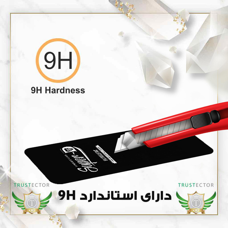9H , قابلیت نصب آسان , مقاوم در برابر خط و خش , نصب بدون حباب , مقاوم در برابر چربی و اثرانگشت , صفحه نمایش