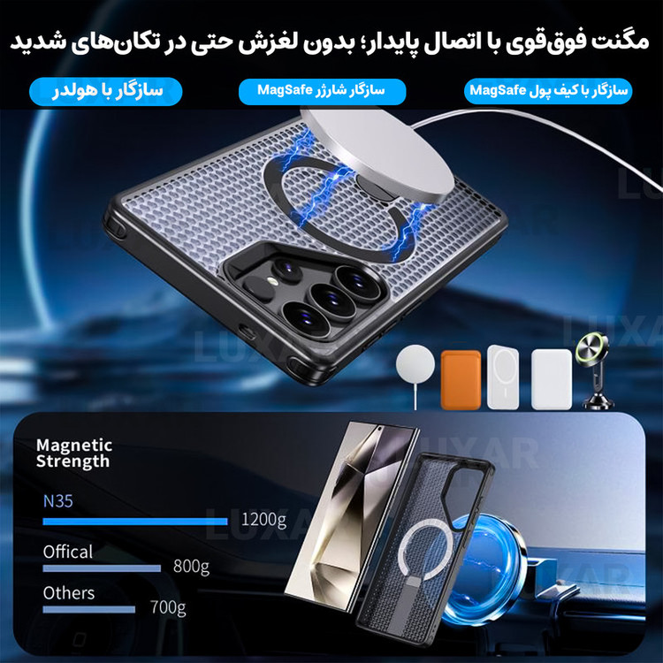 سازگار با هولدر - سازگار با شارژر MagSafe - سازگار با كيف يول MagSafe - استاندارد نظامى سقوط از ارتفاع 3متر