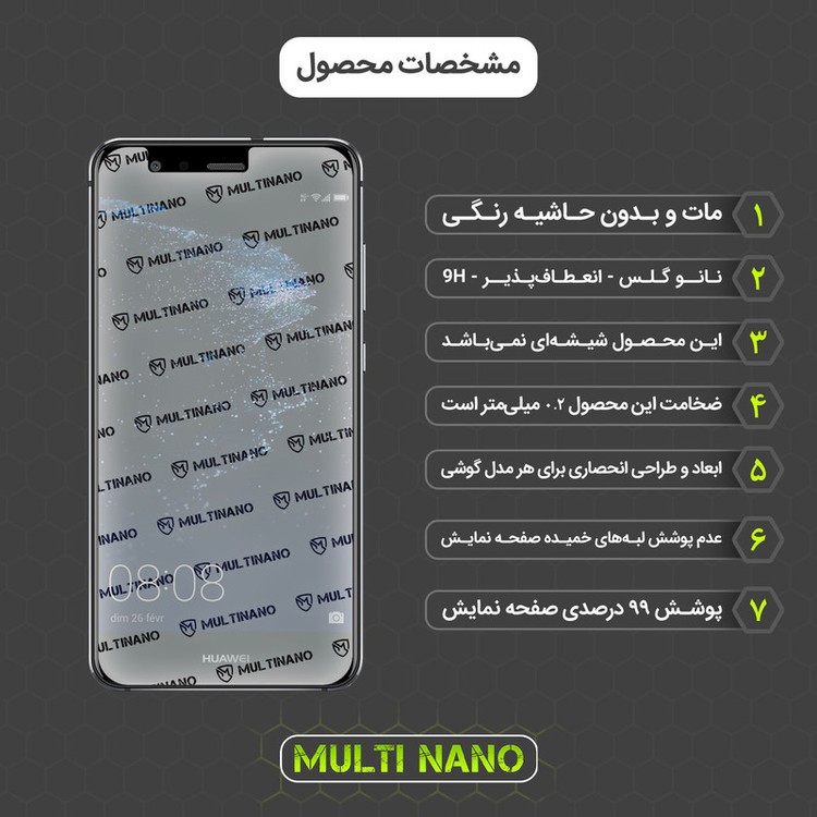 ویژگیها: 9H , جلوگیری از انعکاس نور , مقاوم در برابر چربی و اثرانگشت