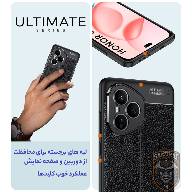 قاب گوشی آنر 400 پرو مدل Ultimate برند سامورایی، سبک و باریک اما مقاوم، با محافظت کامل از گوشی هوشمند شما. این قاب سیلیکونی آنر 400 پرو از سیلیکون مایع باکیفیت ساخته شده که در برابر اثر انگشت، خطوخش، لغزش و تعریق مقاوم بوده و حس نرمی و دوام بالایی ارائه میدهد. طراحی ارگونومیک و بافت شیک پشت قاب، گریپ بهتر و ظاهر جذابی را فراهم میکند. قاب محافظ شیائومی Honor 400 Pro با برشهای دقیق امکان دسترسی آسان به دکمهها را بدون نیاز به جدا کردن قاب فراهم کرده و لبههای برجسته محافظت بیشتری از دوربین و صفحهنمایش ارائه میدهند. این قاب باریک و ضدضربه شیائومی بدون افزایش حجم گوشی، از ضربه و لرزش جلوگیری کرده و به خوبی از نفوذ گردوغبار محافظت میکند.