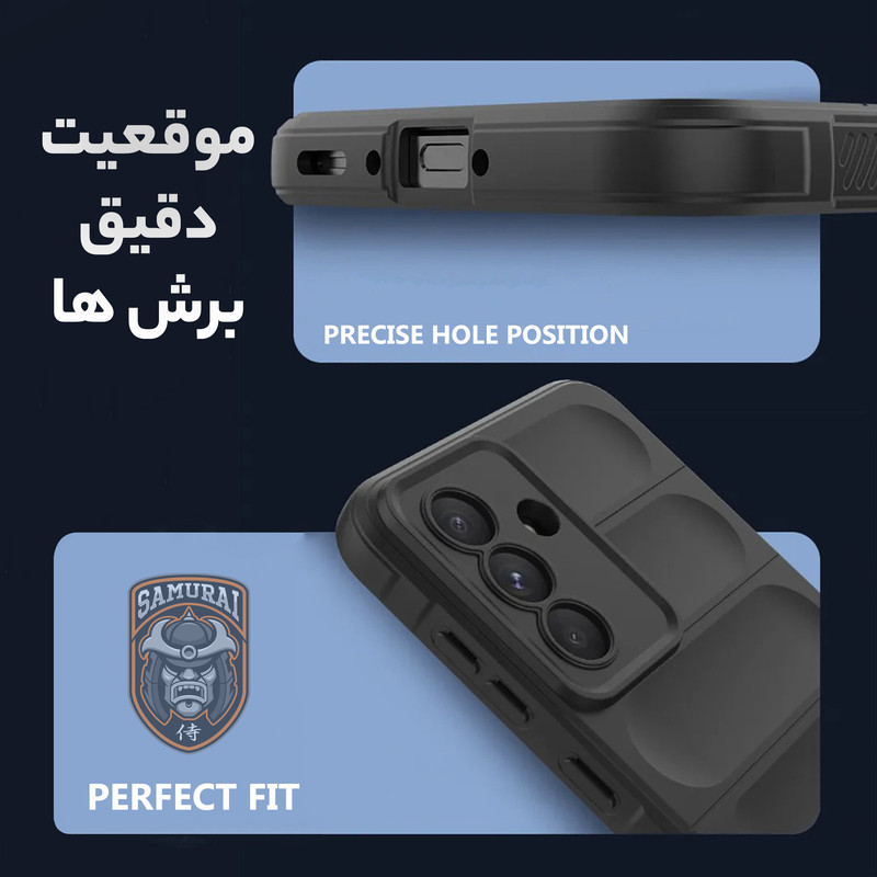 قاب گوشی سامسونگ Galaxy A26 5G برند سامورایی مدل Uflax با استفاده از مواد باکیفیت TPU و PC ساخته شده و محافظت بینظیری در برابر ضربه و شوک برای گوشی Samsung Galaxy A26 فراهم میکند. این قاب با طراحی دقیق و لبههای برجسته، محافظت کاملی از صفحهنمایش و دوربین گوشی شما در برابر افتادن، ترکخوردگی و خراشهای سطحی ارائه میدهد. لایه داخلی آن از میکروفیبر نرم ساخته شده که مانع ایجاد خراش روی بدنه گوشی میشود. علاوه بر این، برشهای دقیق این قاب دسترسی سریع و آسان به تمامی پورتها، دوربین، اسپیکر و میکروفون گوشی SamsungGalaxyA26 را ممکن میسازد و تجربهای راحت و بیدردسر را برای کاربران تضمین میکند.