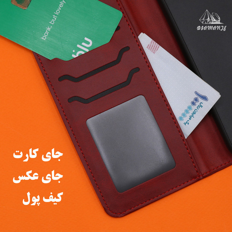 کیف کلاسوری دیامانته مدل Bandaviz Gn یک کیف درجه یک با قابلیت های بالا است که امروزه در بازار ایران عرضه می شود.این کیف از جنس چرم مصنوعی و فوم تشکیل شده و کاملا با دوام و مقاومت بالا ساخته شده است.این کیف از چرم مصنوعی براق ساخته شده برای جلوه بیشتر و متمایز کردنش از بقیه جنس های مشابه در بازار می باشد.قاب داخلی این کیف از جنس TPU ساخته شده و انعطاف پذیری بسیار بالایی دارد.یک قفل مگنتی قوی برای باز نشدن درب کیف شما تهیه شده است.در اصل شما با تهیه این کیف,با یک تیر 3 نشون میزنید:یک قاب یا کاور با کیفیت وزیبا برای تلفن همراه خود تهیه کردین دو دیگ نیازی به خرید محافظ لنز نیست چون این قاب محافظ لنز دوربین هم دارد و گزینه سوم هم اینکه شما صاحب یک کیف پول تمامو کمال شدین چون این کیف دارای بند مجزا ، جای کارت برای کارت های عابر,مترو و ...شما است.دسترسی آسان به درگاه ها,قابلیت تبدیل شدن به استند و بند مچی بسیار قوی از جمله قابلیت های این قاب است.