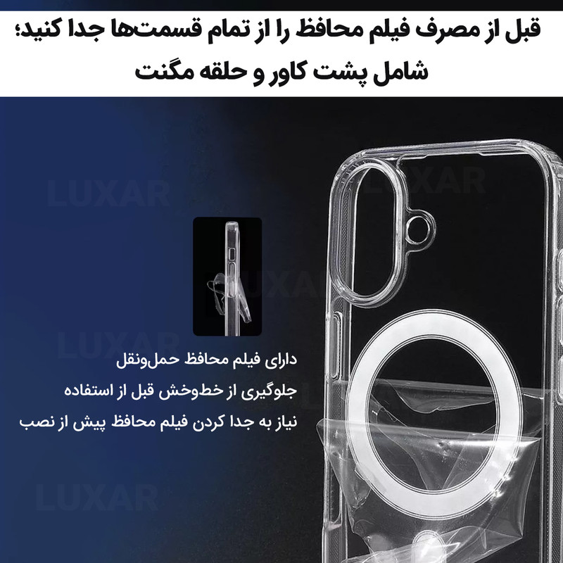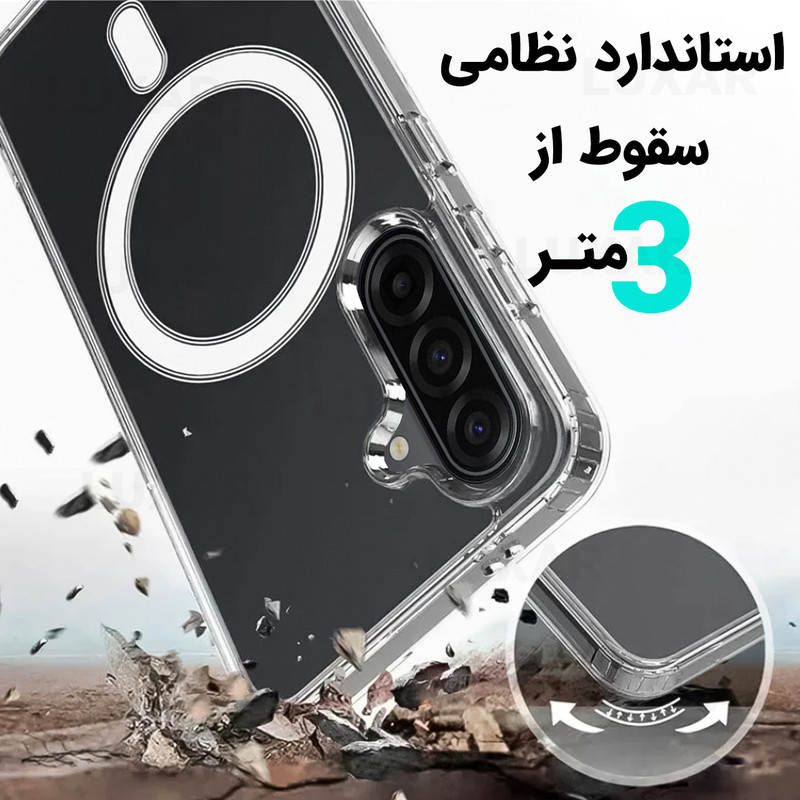 استاندارد نظامی سقوط از ارتفاع ۳ متر - عدم تغییر رنگ - محافظت از لنز گوشی- متریال شفاف با دوام بالا - بدون تغییر رنگ - پشتیبانی از MagSafe برش های دقیق