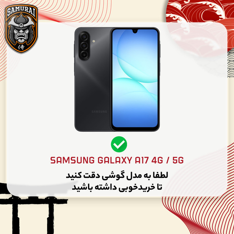 قاب گوشی Samsung Galaxy A17 / سامسونگ گلکسی A17 از برند سامورایی مدل ELEGANT با روکش چرم مصنوعی با کیفیت، طراحی شیک و محافظ لنز دوربین، انتخابی ایدهآل برای محافظت از گوشی شماست. بدنه قاب از TPU نرم و مقاوم ساخته شده و دارای گریپ ضد لغزش برای جلوگیری از سر خوردن گوشی است. این قاب ضمن حفظ استایل حرفهای، محافظت کامل در برابر ضربه و خط و خش را تضمین میکند.