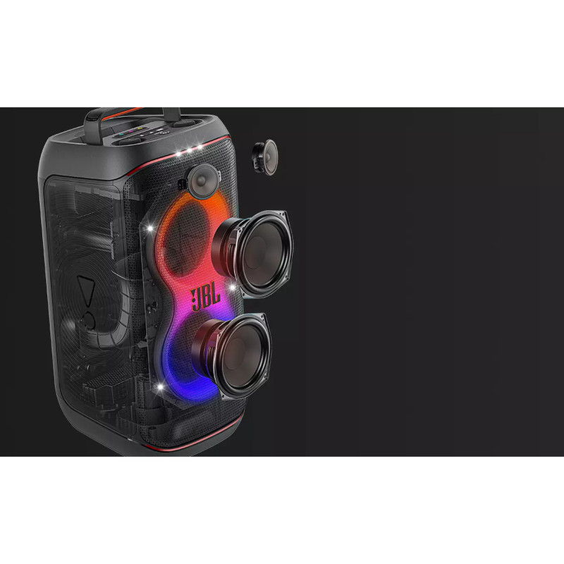 این اسپیکر همچنین دارای ورودی گیتار و رابطهای USB و AUX است که به کاربران این امکان را میدهد که به راحتی به منابع صوتی مختلف متصل شوند. با توان خروجی کلی ۱۶۰ وات و نسبت سیگنال به نویز ۸۰ دسیبل، PartyBox Club 120 تجربهای بینظیر از موسیقی را به ارمغان میآورد.
