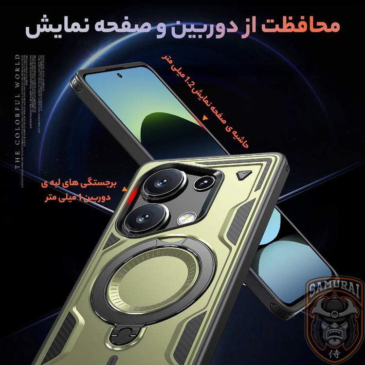 قاب شیائومی ردمی نوت 14s مدل Standra از برند سامورایی یک گزینه حرفهای، مقاوم و شیک برای محافظت از گوشی شماست. این قاب با طراحی مدرن و چندکاره، دارای حلقه مغناطیسی N52 قوی، پایه چرخان 360 درجه، استند تاشو و محافظت نظامی در برابر ضربه است. تقویتشده با ایربگ چهارگوشه، قاب Xiaomi Redmi Note 14s محافظت حداکثری در برابر افتادن و ضربه را تضمین میکند. با پشتیبانی از انواع لوازم جانبی مغناطیسی و قابلیت ایستادن در حالت عمودی یا افقی، استفاده از گوشی برای مطالعه، تماشا فیلم یا تماس تصویری را بسیار راحتتر میکند.اگر بهدنبال یک قاب مقاوم، کاربردی هستید، این گزینه برای Xiaomi Redmi Note 14S بهترین انتخاب است.