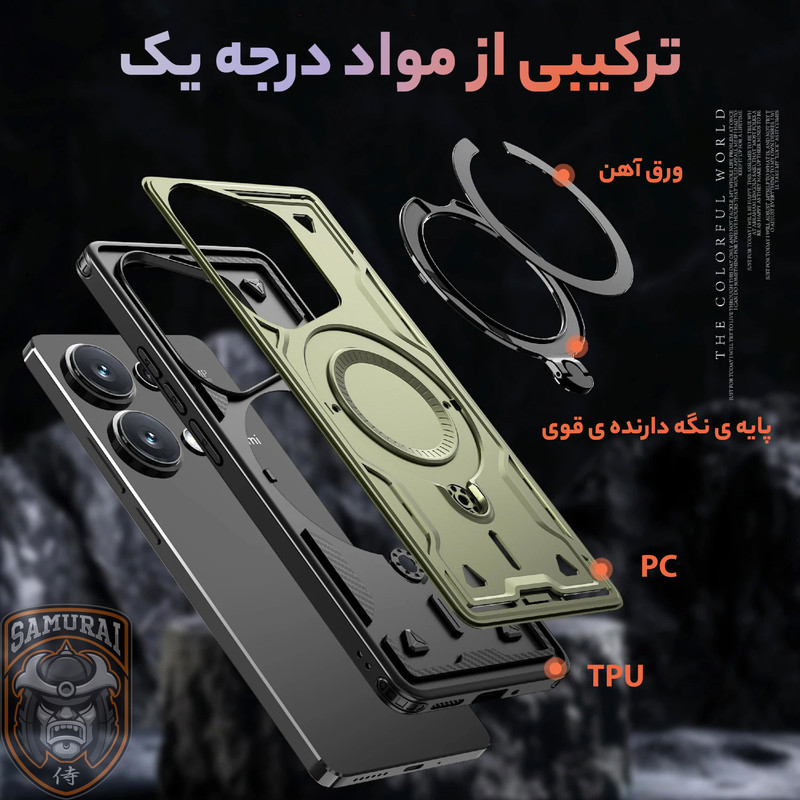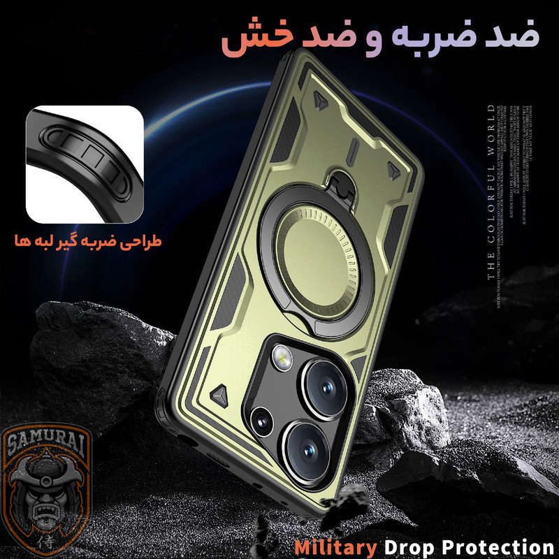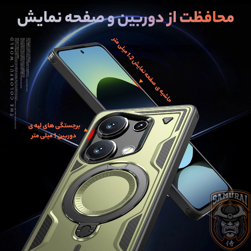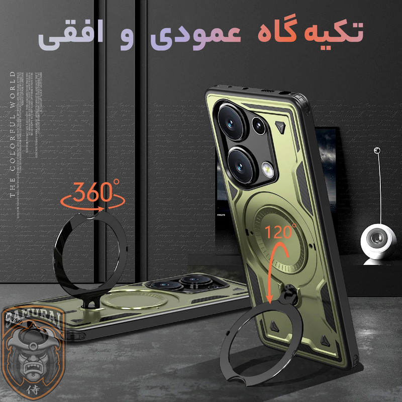 قاب شیائومی ردمی نوت 14s مدل Standra از برند سامورایی یک گزینه حرفهای، مقاوم و شیک برای محافظت از گوشی شماست. این قاب با طراحی مدرن و چندکاره، دارای حلقه مغناطیسی N52 قوی، پایه چرخان 360 درجه، استند تاشو و محافظت نظامی در برابر ضربه است. تقویتشده با ایربگ چهارگوشه، قاب Xiaomi Redmi Note 14s محافظت حداکثری در برابر افتادن و ضربه را تضمین میکند. با پشتیبانی از انواع لوازم جانبی مغناطیسی و قابلیت ایستادن در حالت عمودی یا افقی، استفاده از گوشی برای مطالعه، تماشا فیلم یا تماس تصویری را بسیار راحتتر میکند.اگر بهدنبال یک قاب مقاوم، کاربردی هستید، این گزینه برای Xiaomi Redmi Note 14S بهترین انتخاب است.