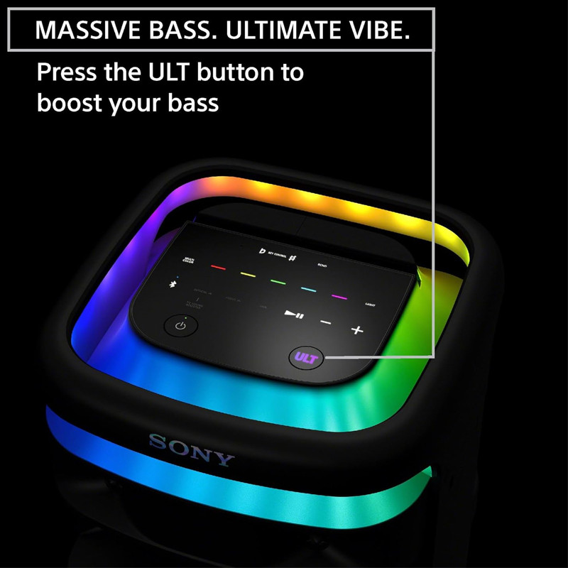 SRS-ULT1000 با ۷ بلندگو شامل ۲ توییتر، ۲ میدرنج، یک ساب ووفر و ۲ توییتر پشتی، صدای فراگیر و قوی را ارائه میدهد. توان خروجی کلی آن ۱۳۹ وات است که همراه باحالتهای مختلف تنظیم صدا و پشتیبانی از ۷ باند EQ، صداهای بیس عمیق و تونهای بالا و میانی شفاف را به گوش میرساند. ویژگی "ULT POWER SOUND" هم که دو حالت مختلف دارد، تجربه صوتی قدرتمندتری را به کاربران ارائه میدهد. این اسپیکر همچنین به ورودی اپتیکال و پورت USB برای اتصال به دستگاههای مختلف مجهز شده است و دارای قابلیت Party Connect برای اتصال چندین اسپیکر و ایجاد صدای چندگانه و فراگیر است. سطح بالای اسپیکر دارای مقاومت در برابر پاشش آب است که به شما امکان میدهد آن را در محیطهای مرطوب هم استفاده کنید. اقلام همراه این اسپیکر شامل یک میکروفون بیسیم، کابل اپتیکال و کابل برق میشود.