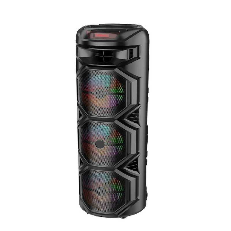 محصول جدید از شرکت ZQS که در ایران علاقمندان زیادی دارد این اسپیکر زیبا و باکیفیت دارای سه باند 8 اینچ است که همین امر باعث شده پرتاب صدای خوبی نسبت به اسپیکرهای 2 باند داشته باشد. طراحی شیک و زیبا با چرخهای روان باعث شده که شما بتوانید به راحتی آن را حمل کنید. یکی از مهمترین ویژگیهای این محصول جدید که داری میکروفون وایرلس(بیسیم) قابل شارژ با پورت TPC است که جدیدا اسپیکرهای شرکت zqs این قابلیت را اضافه کرده است. ریموت کنترل، کابل شارژ TPC, باطری 4500 میلیآمپر ساعت، توان خروجی 60 وات، اتصال کارت حافظه، USB.AUX و بلوتوث.