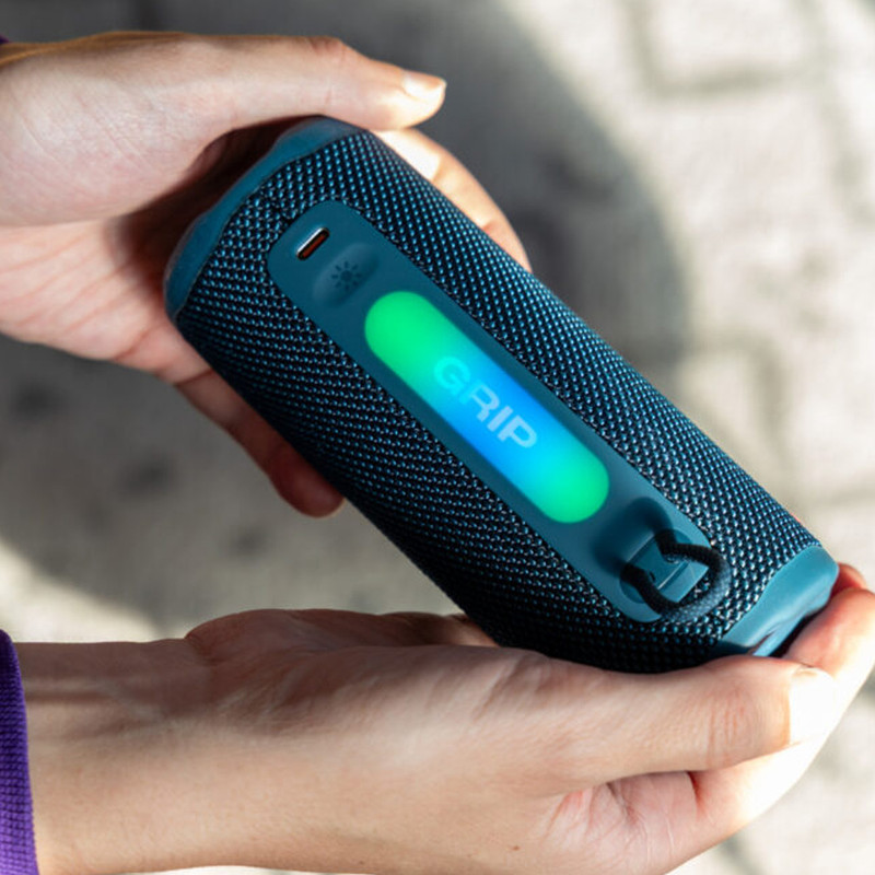 در بخش اتصال، Grip از بلوتوث نسخه ۵.۴ با پروفایلهای A2DP و AVRCP بهره میبرد که ارتباطی پایدار و سریع را بدون قطع و وصل تجربه خواهید کرد. درگاه USB Type‑C نیز وظیفه شارژ را بر عهده دارد و تنها در ۳ ساعت باتری داخلی لیتیومیونی را کاملاً شارژ میکند. این باتری قادر است تا ۱۴ ساعت پخش مداوم را فراهم کند—عدد چشمگیری برای اسپیکری در این اندازه.