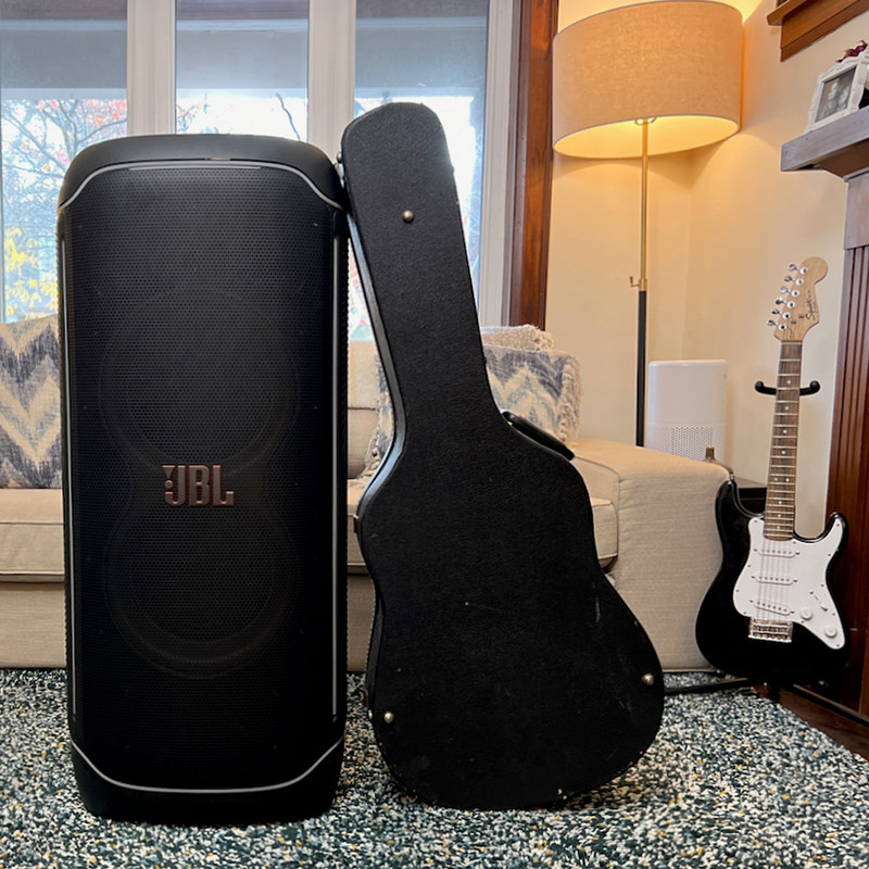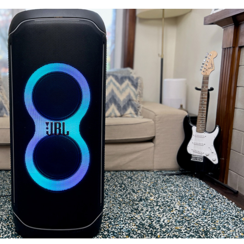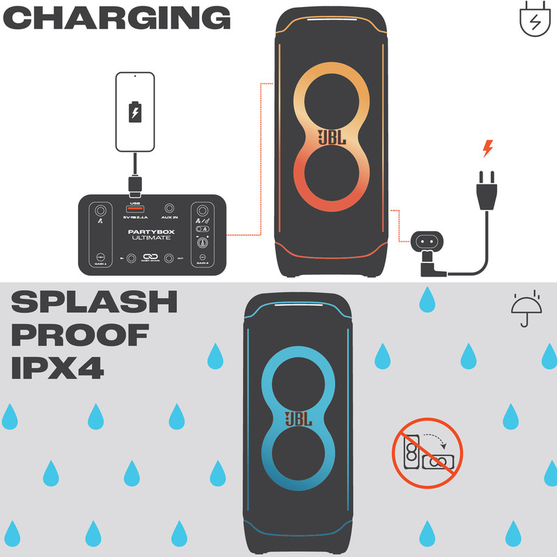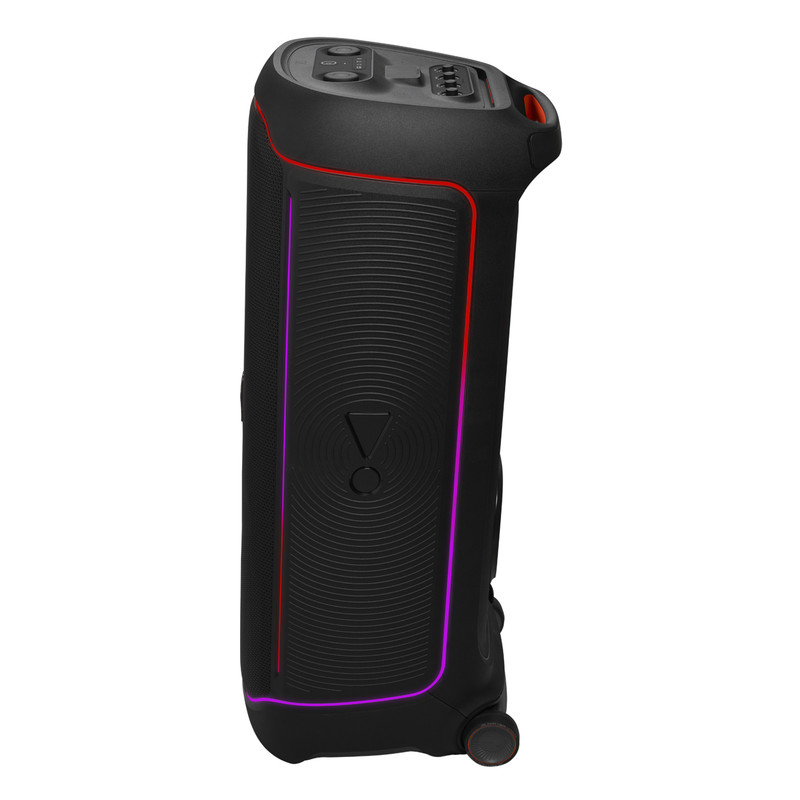 اسپیکر پرتابل و بلوتوثی Ultimate نسل جدید اسپیکرهای سری PartyBox از برند محبوب جی بی ال است. این اسپیکر قابل حمل با درایورهای بهبود یافته و سخت افزار بروز شده، تجربهی صوتی متفاوتی را به شما ارائه میدهد. همچنین طراحی ظاهری زیبا و چشمگیر آن همراه با بدنهی ضدآب و مقاوم ، شما را با سطح جدیدی از سیستمهای صوتی پرتابل آشنا میکند. دلیل نامگذاری این اسپیکر ظرفیت بالای صدای تولیدی و آخرین و به روزترین تکنولوژیهای نوری و سیستماتیک این محصول است همچنین برای اتصال این اسپیکر به دستگاههای پخش مانند گوشی موبایل یا پلیرها ، از تکنولوژی بلوتوث استفاده شده است تا بتوانید به راحتی به این اسپیکر متصل شده و به صورت بی سیم موسیقی مورد علاقه خود را بشنوید. جی بی ال در سری جدید اسپیکر Ultimate از بلوتوث نسخه 5.3 که جدید ترین نسخه در حال حاضر است استفاده کرده است و این اسپیکر حرفهای دارای صدای قدرتمند و شفافی است که توسط درایور های جدید و بهبود یافته تولید و پخش میشود. 2 عدد ساب ووفر 242میلی متری(9 اینچی) به همراه 2 عدد بلندگوی مید رنج 120میلی متری(4.5 اینچی) و 2 عدد بلندگوی تیوتر 74 میلی متری(2.75اینچی)در کنار هم تجربهی صوتی جدید و بی نظیری را برای شما فراهم میکنند. در مجموع این محصول قادر است تا صدایی به قدرت 1100 وات RMS را تولید کرده و به گوش شما برساند. بازه فرکانسی قابل پخش در این سیستم صوتی مابین 30 هرتز تا 20000 هرتز است که برای اسپیکری با این ابعاد فوق العاده است. تنظیمات افکتهای صوتی و نوری نیز از جدید ترین نوع بوده و رقص نور و نور پردازی با جزعیات دقیق آهنگ پخش شده هماهنگ میگردد. ورودیهای میکروفن و گیتار هم دارای تنظیمات دقیقی است تا هر آنچه از صوت و تصویر برای برپایی میهمانیهای خود نیاز دارید در کنار هم جمع باشد.با وجود وزن زیاد این محصول،چرخ های تقویت شده آن نسبت به مدلهای قبلی کارایی بهتری در جا به جایی آن در اختیار کاربر قرار می دهند.اتصال تمامی محصولات خانواده PartyBox به هم در این محصول دیده میشود و میتواند تمام کننده ی نیاز صوتی شما باشد.اسپیکر Ultimate برترین محصولی است که واژهی JBL Pro Sound را به تصویر میکشد.