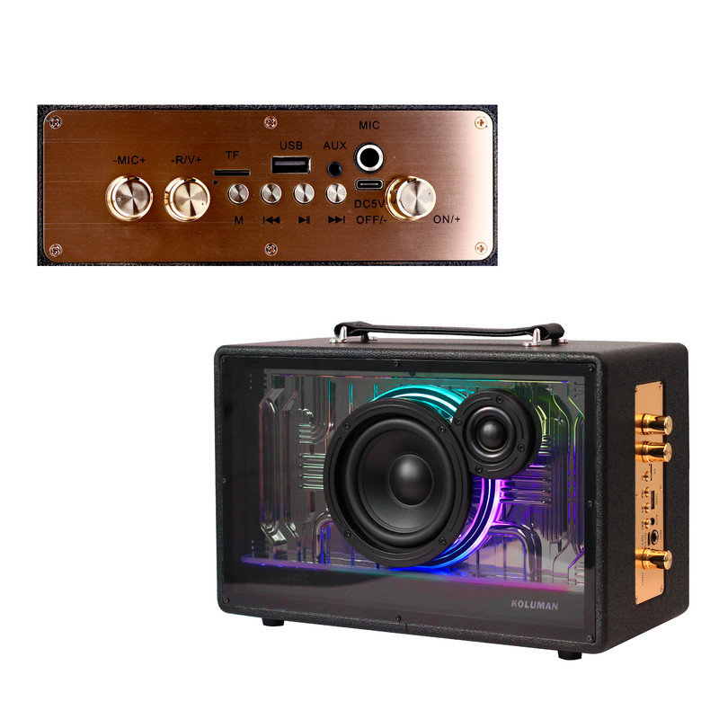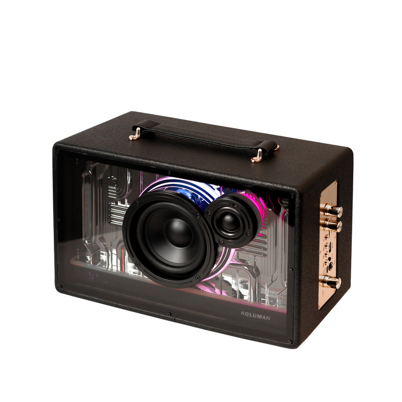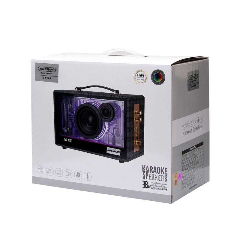 اسپیکر KS-145 یکی از جذابترین اسپیکر های کمپانی کلومن که با قابلیت کارائوکه خود میتواند گزینه مناسبی برای تمامی افراد باشد . این اسپیکر دارای دو عدد میکروفون بی سیم همراه خود میباشد که شما میتوانید با استفاده از این میکروفون ساعت ها از خواندن به همراه موسیقی مورد علاقه تان لذت ببرید.موردی که این اسپیکر را از اسپیکرهای کارائوکه معمولی جدا میکند دکمه افکت روی میکروفون های آن است که میتوانید بدون هیچ دستگاه خاصی به صدای خود افکت بدهید. قابل ذکر است که این دستگاه بلندی صدا و تفکیک صدای عالی ای دارد . این اسپیکر دارای امکان تنظیم اکو میباشد .شما میتوانید با بلوتوث ، کارت حافظه ، کابل AUX،و فلش به این دستگاه متصل شوید و از آن لذت ببرید . این اسپیکر دارای دو عدد بلندگو با توان خروجی 30 وات و 8 وات و قطر های 115 و 40میلیمتر میباشد. ظرفیت باطری این دستاه 3600 میلی آمپر میباشد که با توجه به حجم صدای مورد استفاده 3-5 ساعت قابلیت پخش موسیقی دارد. همچنین به دلیل ظاهر جذاب و رقص نور خود گزینه مناسبی برای استفاده در هر خانه ای میباشد. علاوه بر این این دستگاه دارای یک عدد دسته چرمی میباشد که امکان حمل آسان را به شما میدهد تا در هر محیطی به راحتی از آن استفاده کنید. اسپیکرKS-145 تمام چیزی که شما از یک اسپیکر میخواهید را برایتان فراهم میکند. این دستگاه قابلیت اتصال به رادیو را هم دارد. این دستگاه دارای دو عدد میکروفون بی سیم میباشد اما امکان اتصال به میکروفون با سیم هم دارد.