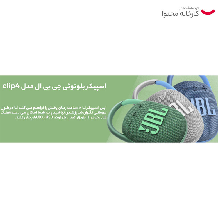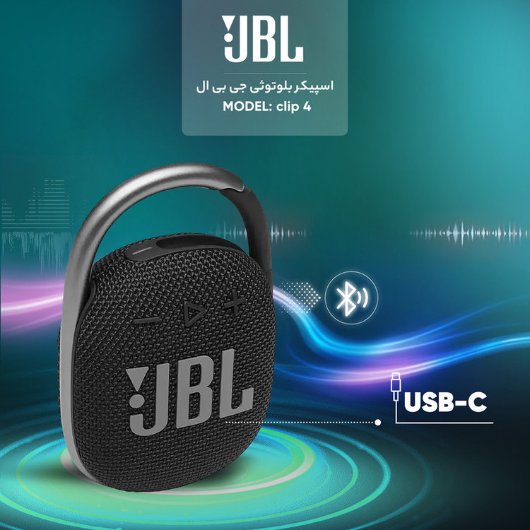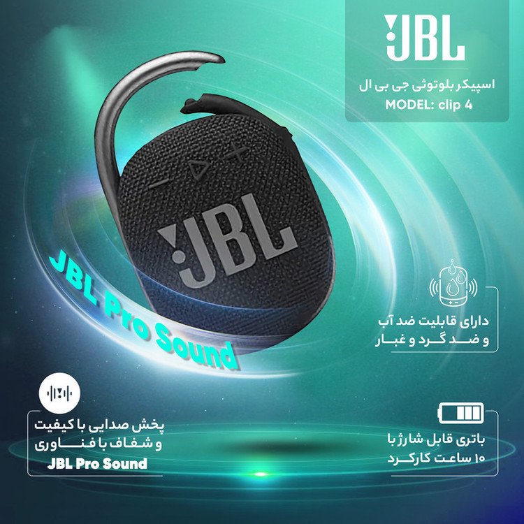 اگر به دنبال یک اسپیکر کوچک و سبک هستید که به راحتی آن را همه جا با خود به همراه داشته باشید، اسپیکر بلوتوثی جی بی ال مدل clip 4 یک انتخاب عالی برای شما است. این دستگاه با ابعاد 130x80x40 میلیمتر فضای بسیار کمی را اشغال میکند و همچون یک گوشی موبایل میتوانید آن را همیشه با خود نگه دارید. این دستگاه با استفاده از بلوتوث نسخه 5.1 و به صورت بیسیم به تلفن همراه، تبلت، لپ تاپ و سایر دستگاههای مدنظرتان، متصل میشود. اسپیکر مذکور از برند جی بی ال برای تامین نیروی مورد نیاز خود، از باتری استفاده میکند. باتری قدرتمند این دستگاه تنها در مدت زمان سه ساعت به طور کامل شارژ میشود. این باتری پس از شارژ کامل، تا بیش از 10 ساعت توانایی شارژدهی دارد که فقط در بهترین اسپیکرهای بازار شاهد چنین چیزی هستیم. توان خروجی کلی اسپیکر بلوتوثی جی بی ال مدل clip 4 برابر با 5 وات است. از دیگر ویژگیهای این اسپیکر بلوتوثی، میتوان به مقاومت آن در برابر آب اشاره کرد. در کنار این محصول، یک عدد دفترچه راهنما و یک کابل Type-C برای شارژ مجدد اسپیکر قرار دارد.
