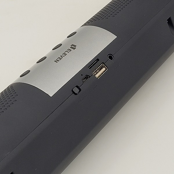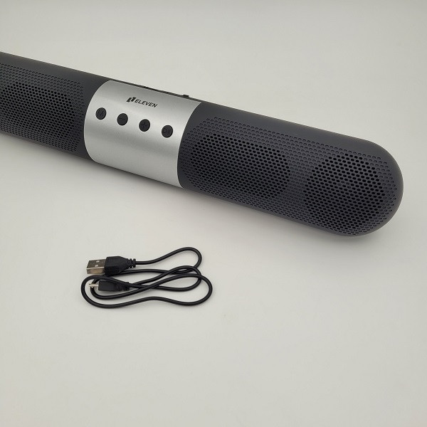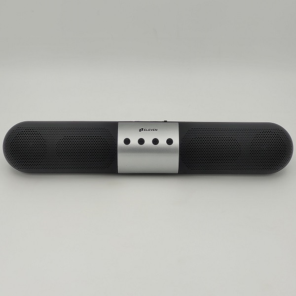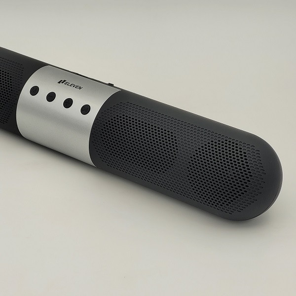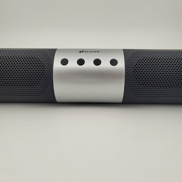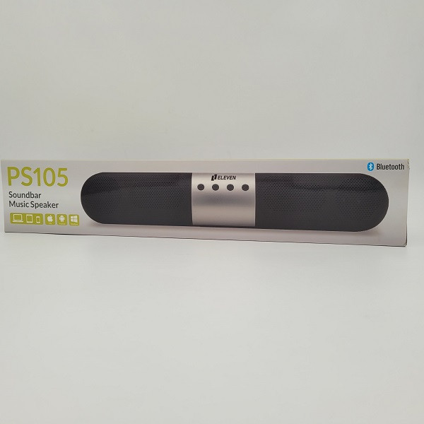 اسپیکر بلوتوثی قابل حمل مدل PS105، یکی از محصولات جدید شرکت ELEVEN است که با توجه به ابعاد بزرگ خود میتواند لذت گوش دادن به موسیقی را برای کاربران فراهم کند. قسمت جلو این اسپیکر میزبان دو باند آن به همراه قاب روی آن است تا این اسپیکر بتواند صدا را به صورت استریو و با بیشترین کیفیت به گوش کاربران برساند و جلوههای بصری بسیار زیبایی به آنها ارائه کند. پورتهای اتصال باسیم این اسپیکر در قسمت پشتی آن قرار دارند و به هیچ عنوان زیبایی قسمت جلویی این محصول را دچار اختلال نمیکنند. کلیدهای کنترل موسیقی و صدا هم در قسمت جلوی اسپیکر بلوتوثی PS105 قرار دارند و دسترسی به آنها کار دشواری به نظر نمیرسد. درایوهای PS105 قابلیت ارائه توان خروجی حداکثر 5x2 وات را در بازه فرکانسی 100 هرتز الی 20 کیلوهرتز ارائه میکند تا بلندی و شفافیت صدای نسبتا مناسبی را هنگام گوش دادن به موسیقی از این اسپیکر شاهد باشیم. اتصالات اسپیکر به حافظه جانبی و دستگاهها توسط پورتهای USB، شیار کارت حافظه Micro-SD و درگاه 3٫5 میلیمتری AUX انجام میشود. امکان اتصال بدون سیم نیز توسط بلوتوث داخلی PS105 وجود دارد و کاربران به سادگی میتوانند تلفن همراه، تبلت و دیگر دستگاههای بلوتوثی خود را به سادگی با این اسپیکر همگامسازی کنند. از دیگر قابلیتهای این اسپیکر میتوان به امکان استفاده از آن به عنوان استند تلفن همراه اشاره کرد که قابلیت منحصربهفردی برای یک اسپیکر شمرده میشود. تامین انرژی این اسپیکر نیز برعهده باتری 1800 میلیآمپر ساعتی است که از شارژدهی مناسبی نسبت به بلندی صدا برخوردار است. در ضمن این اسپیکر قابلیت پشتیبانی از حالت فست شارژ را دارد (کیفیت شارژر و کابل مهم است)