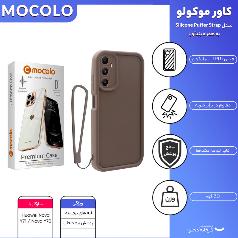 کاور موکولو مدل Silicone Puffer Strap مناسب برای گوشی موبایل هوآوی Nova Y71 / Nova Y70 به همراه بند آویز