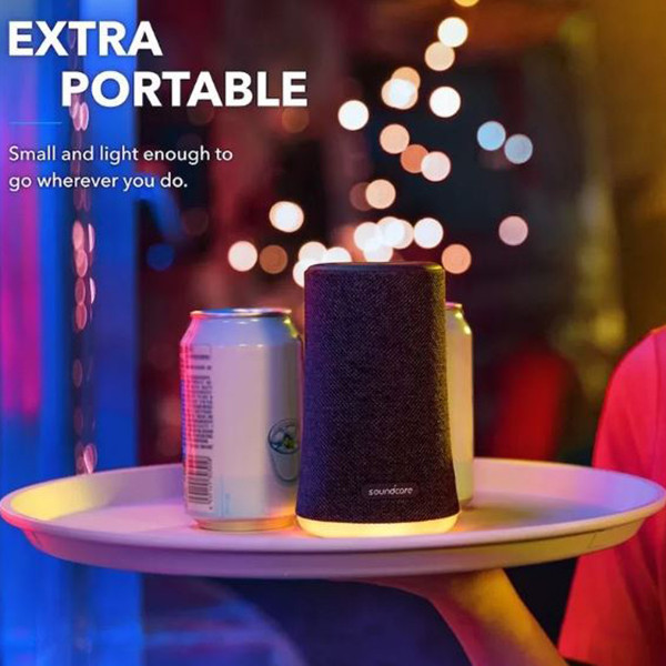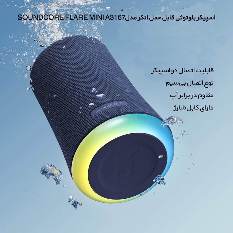 اسپیکر پرتابل Flare Mini یک سیستم صوتی همراه می باشد که تمامی امکانات لازم برای یک اسپیکر مسافرتی را در خود داشته و از جدید ترین تکنولوژی های روز بهره مند است. این اسپیکر بی نظیر به شکل استوانه ای طراحی شده است و به همین دلیل قابلیت پخش صدای 360 درجه را دارد ، در قسمت پایین این اسپیکر چراغ ال ای دی دایره ای شکل وجود دارد که رقص نورخیره کننده ای را به نمایش می گذارد. می توانید به راحتی از طریق بلوتوث به این سیستم صوتی وایرلس متصل شوید و موسیقی دلخواه خود را گوش دهید. در تولید این اسپیکر از تکنولوژی BassUp استفاده شده است که قدرت صدا را افزایش داده و فرکانس های بیس صدا را تقویت می کند و باعث افزایش کیفیت صدا و تولید بیس عمیقی می شود. بدنه ی این اسپیکر با دارا بودن گواهینامه بین المللی IPX7 کاملا ضد آب می باشد که به شما این امکان را میدهد تا از این اسپیکر مسافرتی در هر محیطی حتی در استخر یا دریا و یا هنگام بارش باران نیز استفاده کنید بدون اینکه نگران هر گونه آسیبی باشید. یکی دیگر از ویژگی های بی نظیر این اسپیکر امکان اتصال دو عدد Flare Mini به یکدیگر می باشد ، توسط این ویژگی می توانید دو عدد اسپیکر Flare Mini را به هم متصل کرده و صدای موسیقی خود را بصورت استریو بشنوید ، همچنین می توانید نمایش نور اسپیکر را با فشردن یک دکمه به دلخواه خود تنظیم کنید. این اسپیکر شارژی با هر بار شارژ کامل قادر است تا 12 ساعت بدون وقفه برای شما موسیقی پخش کند.