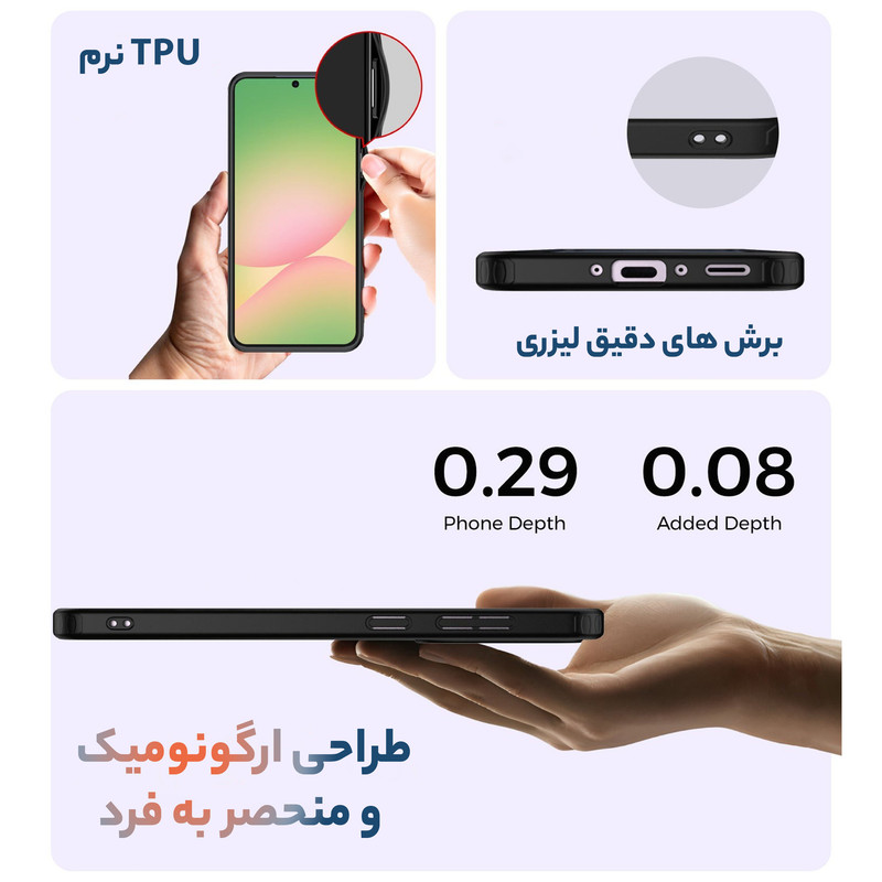 قاب گوشی برند سامورایی مدل Specter برای سامسونگ Galaxy A56 با طراحی یکپارچه مات و شفاف ساخته شده است و از ترکیب پلیکربنات و TPU ساخته شده و رنگ اصلی گوشی را برجسته میکند. این قاب با فناوری دفاع در برابر سقوط، تست سقوط از ارتفاع 1 متری را با موفقیت پشت سر گذاشته و حفاظت کامل را ارائه میدهد. دارای برشهای دقیق و فیدبک لمسی برای دکمهها، محافظت 360 درجه و لبههای برجسته برای محافظت از صفحه نمایش و دوربین است. قاب ضد خش، ضد زردی، مقاوم در برابر اثر انگشت و ضد عرق است و در دو رنگ موجود میباشد.