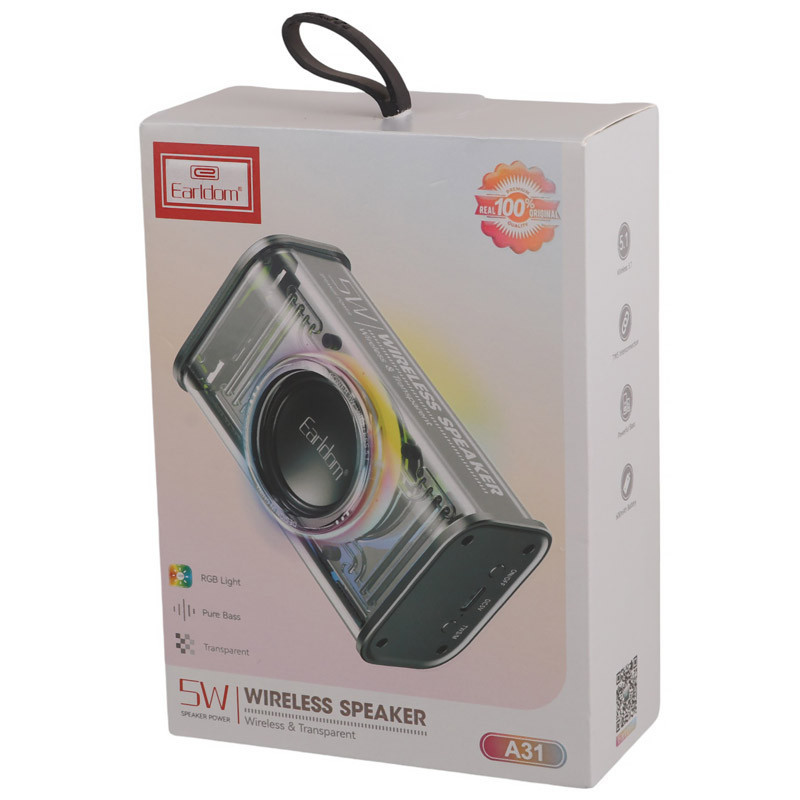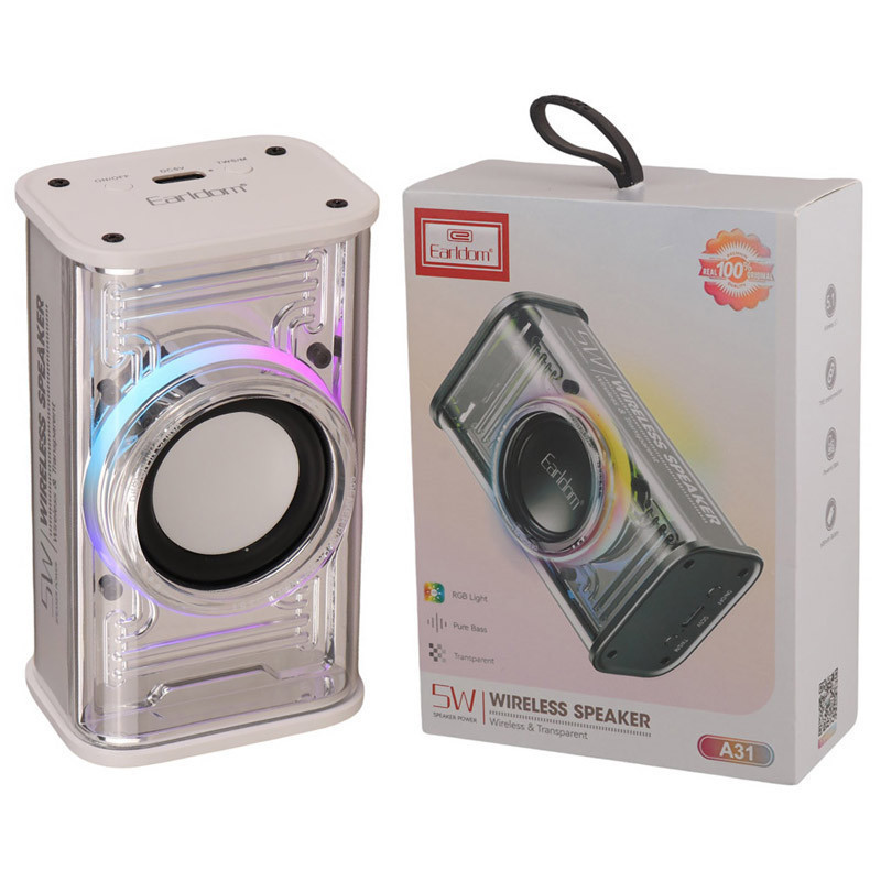 اسپیکر بیسیم Earldom ET‑A31 یک گزینهی زیبا و کارآمد برای علاقهمندان به موسیقی است که به طراحی خاص و شفاف علاقه دارند. این اسپیکر با بدنهی شفاف و نورپردازی RGB رنگی جلوهای مدرن و جذاب ایجاد کرده و در عین حال عملکردی قدرتمند با صدای شفاف و بیس قوی ارائه میدهد. طراحی جمعوجور و قابلحمل آن باعث میشود بتوانید در خانه، محل کار یا سفر، همیشه از گوش دادن به موسیقی لذت ببرید.