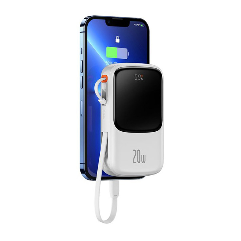 پاوربانک Baseus Qpow Pro PPQD020001 دارای سه خروجی است که یکی آن ها پورت USB بوده و به شما این امکان را می دهد تا بتوانید دو گوشی را با شدت جریان و ولتاژ 5V-3A شارژ کنید. همچنین این پاوربانک دارای 1 پورت تایپ سی است که هم بعنوان ورودی و هم خروجی استفاده می شود. کابل متصل 19 سانتی متری هم با کانکتورآیفونی آخرین خروجی آن به شمار میرود.