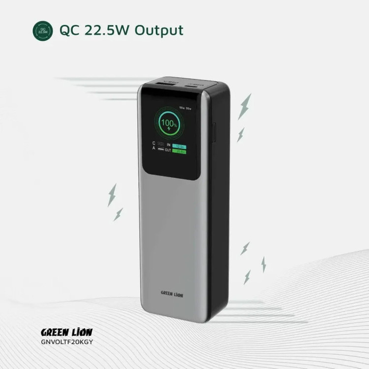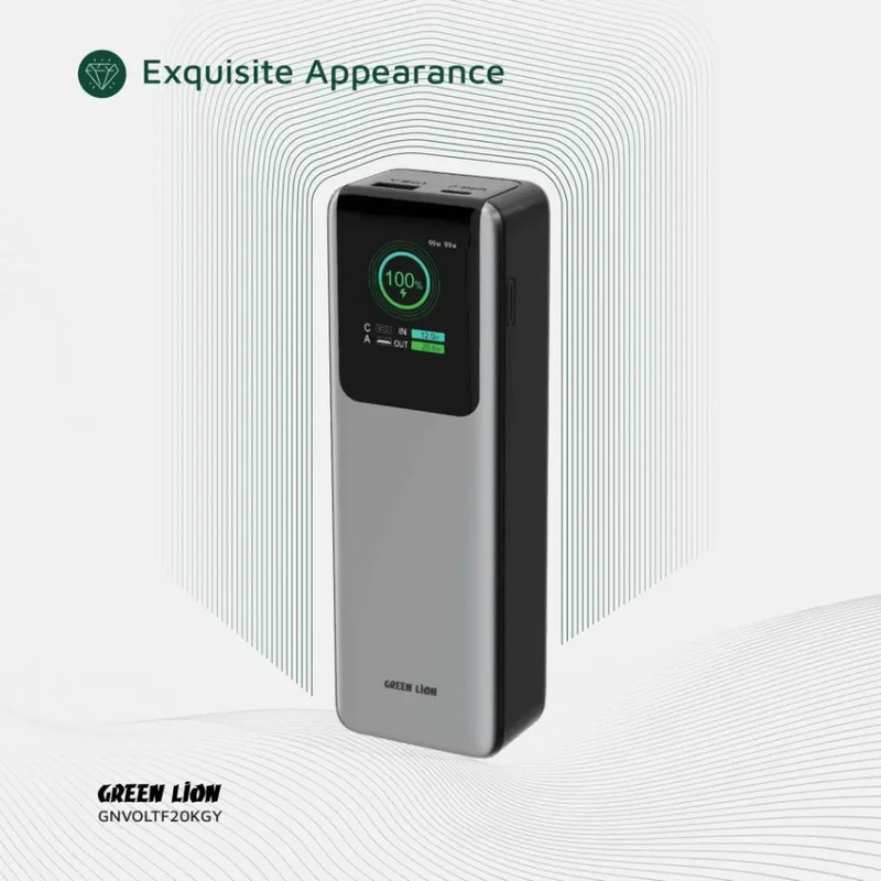 پاوربانک Green Lion Voltura 20000mAh PD100W طراحی جمعوجور و قدرتمندی دارد و توان بالا و شارژ سریع ارائه میدهد. باتری ۲۰۰۰۰ میلیآمپرساعتی آن برای تأمین انرژی دستگاههای شما کاملاً مناسب است. ورودی و خروجی Type-C (با توان PD100W) از شارژ سریع با مقادیر 5V/3A، 9V–15V/3A و 20V/5A پشتیبانی میکند. خروجی USB-A با توان QC 22.5W نیز امکان شارژ سریع دستگاههای دیگر مانند گوشیهای هوشمند را فراهم میکند. این پاوربانک همچنین دارای درگاههای Type-C + USB-A برای راحتی شارژ همهمنظوره است. صفحهنمایش TFT آن وضعیت شارژ را نشان میدهد، و ظاهر زیبا و سبک آن حملش را آسان کرده و با دستگاههای مختلف سازگاری گستردهای دارد. انتخابی مناسب برای کسانی که هنگام سفر یا بیرون از خانه به شارژ سریع و پایدار نیاز دارند.