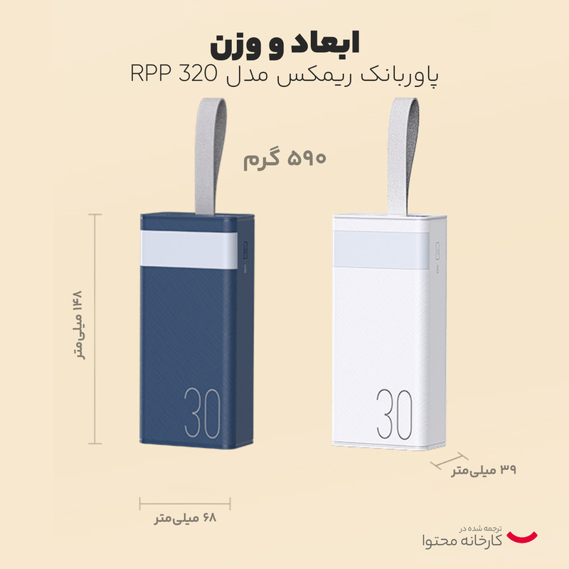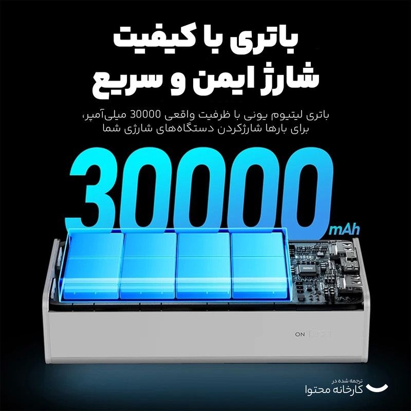 مشخصات فنی: ظرفیت باتری 30000 میلی آمپر ساعتی