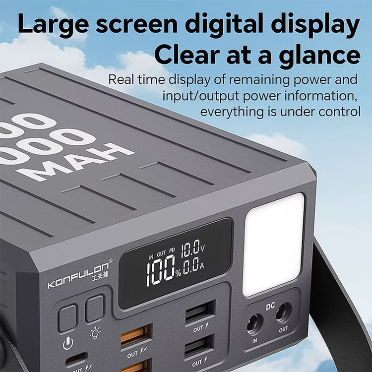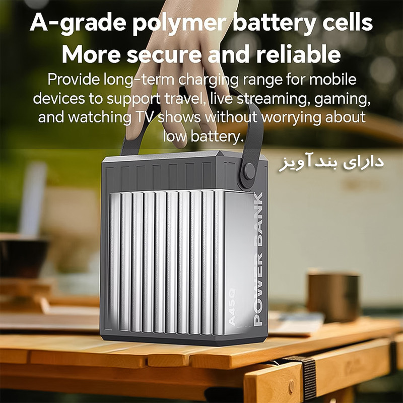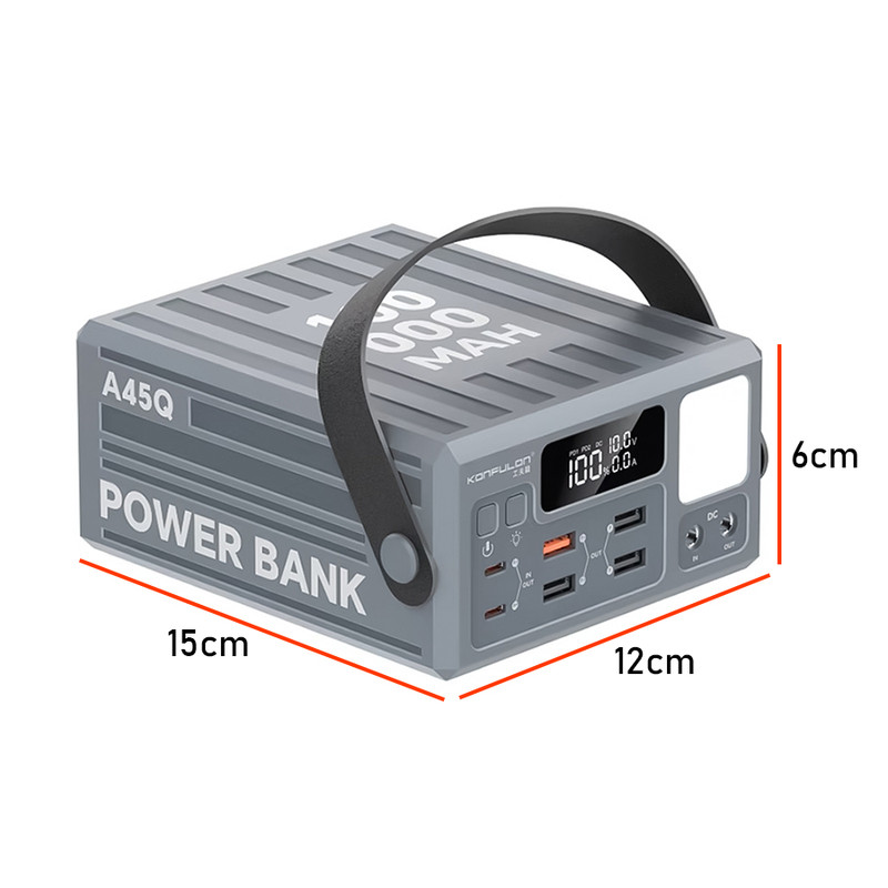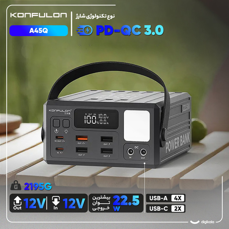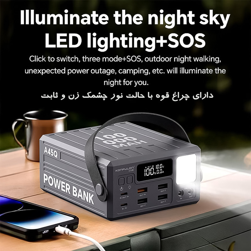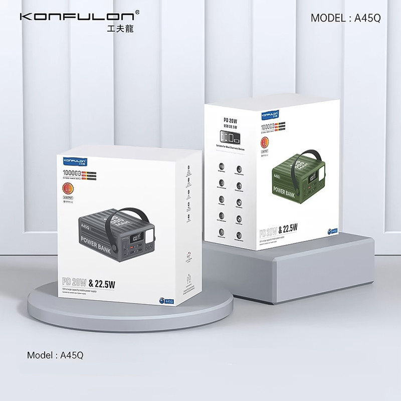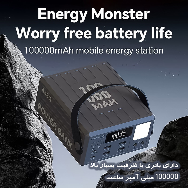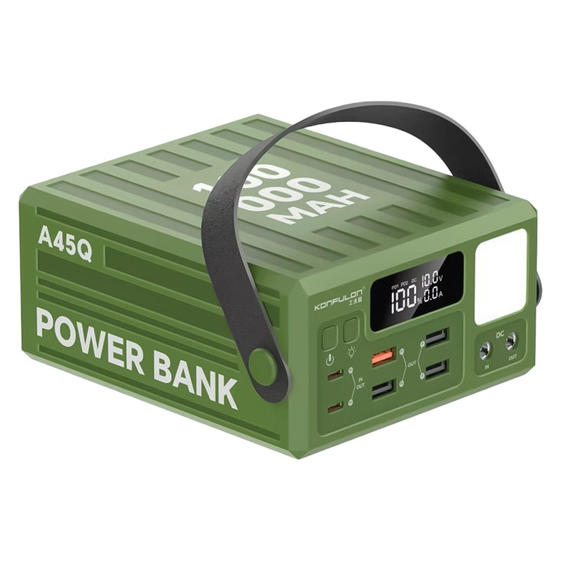 پاوربانک هوشمند برند کانفلون مدل A45Q با ظرفیت 100 هزار میلی آمپر یک انتخاب عالی برای استفاده در سفر، کمپینگ، گردشگری، و حتی استفاده روزمره است. این پاوربانک دارای یک دسته برای حمل آسان است.