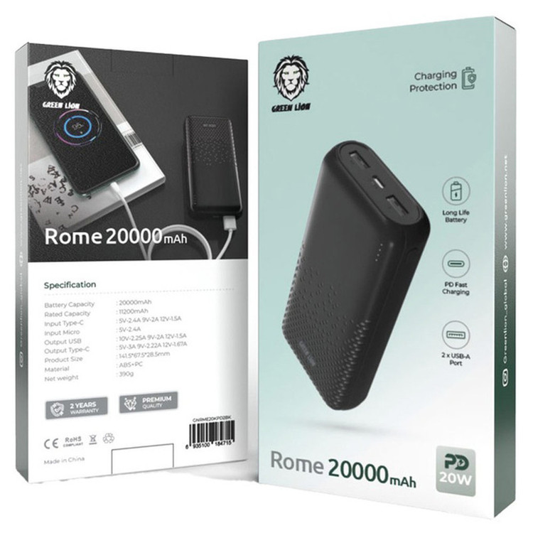 پاوربانک Green lion مدل Rome 20000 و کد فنی GNRME20KPD2BK یکی از جدیدترین محصولات گرین لاین در سال 2024 هست. اگر از شارژ مداوم گوشی خود خسته شده اید؟ یا شاید از سرعت پایین شارژ ناراضی هستید؟ با این پاوربانک، گوشی یا سایر وسایل الکترونیکی خود را در هر کجا که هستید شارژ نگه دارید. ظرفیت این پاوربانک قابل حمل 20000 میلی آمپر ساعت است که میزان کل انرژی الکتریکی را که پاوربانک می تواند ذخیره و برای شارژ دستگاه های الکترونیکی ارائه دهد را نشان میدهد. این پاوربانک همه کاره مجهز با ابعاد 141.5x67.5x28.5 میلی متر و وزن فقط 390 گرم به خروجی های USB نوع A و USB نوع C و ورودی USB نوع C است که می تواند حداکثر خروجی آن 20 وات ارائه دهد. با استفاده از Quick Charge و Power Delivery با 20W می توانید دستگاه خود را به سرعت شارژ کنید. 4 عدد نمایشگر LED از شارژ باقی مانده پاوربانک را نشان میدهد. بنابراین، چه در حال مسافرت باشید، چه در حال کار یا در حال حرکت، میتوانید دستگاه خود را هر زمان که نیاز داشتید بدون کاهش سرعت شارژ کنید.