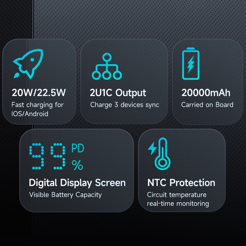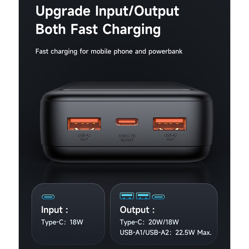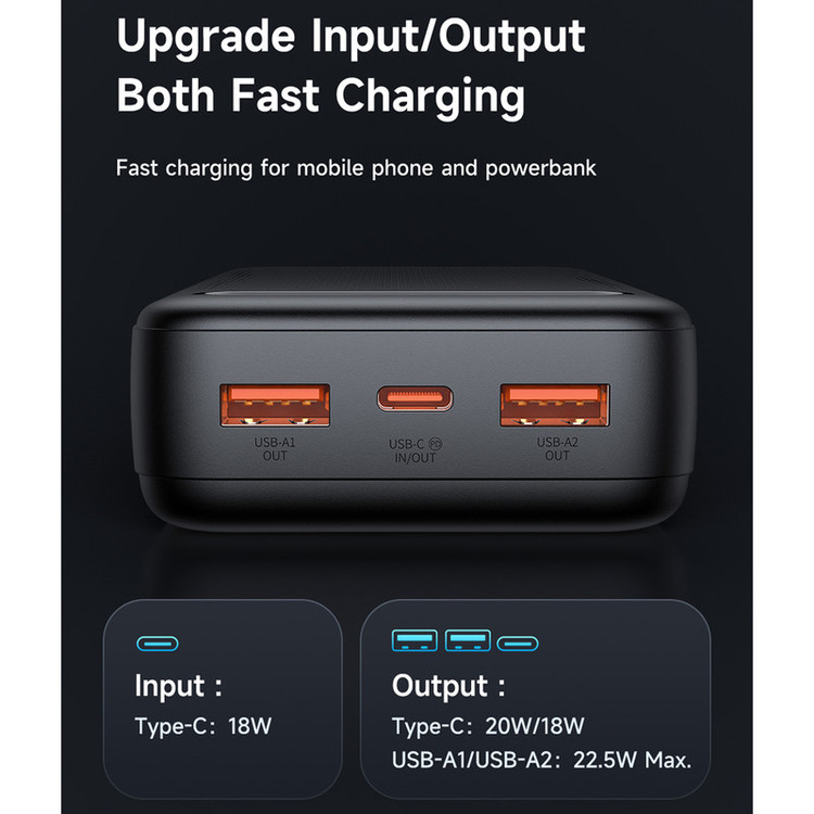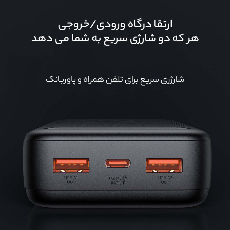 مشخصات فنی: USB A1/A2 output : 4.5V⎓5A,5V⎓4.5A,5V⎓3A,9V⎓2A,12V⎓1.5A,22.5W Max.