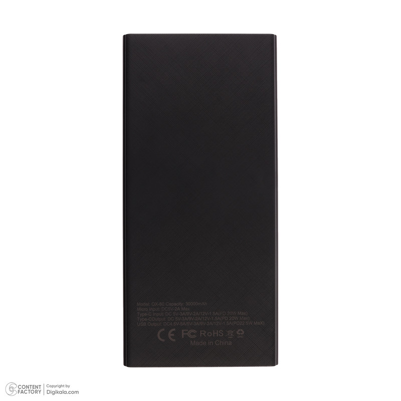 دارای یک پورت Micro USB ورودی با مشخصات 5 ولت 2 آمپر برای شارژ پاوربانک / دارای یک پورت USB-C مشترک برای ورودی خروجی با مشخصات 5V 3A و 9V 2A و 12V 1.5A / دارای دو پورت خروجی USB با مشخصات 4.5V 5A و 5V 3A و 9V 2A و 12V 1.65A / توان پاوربانک تا 22.5 وات