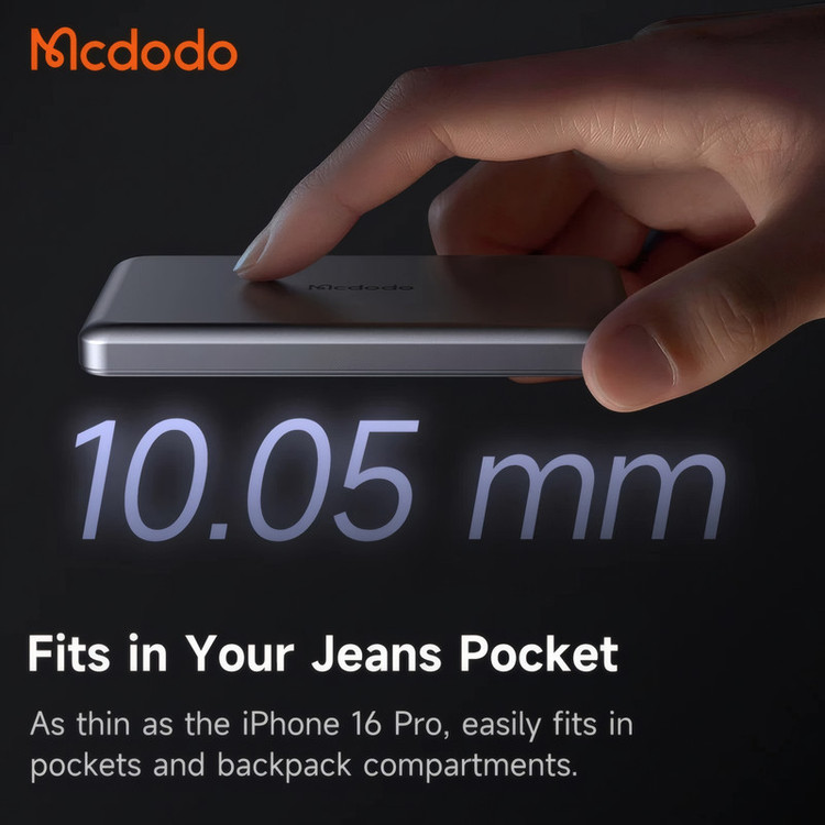 مشخصات فنی: ابعاد: 10.5×64×101 میلیمتر وزن: 123 گرم ظرفیت اسمی: 5000 میلیآمپر ساعت جنس بدنه: آلیاژ آلومینیوم + ABS درگاه ورودی: تایپ C (حداکثر 18 وات) درگاه خروجی: تایپ C (حداکثر 20 وات) و پد شارژ وایرلس (حداکثر 15 وات)