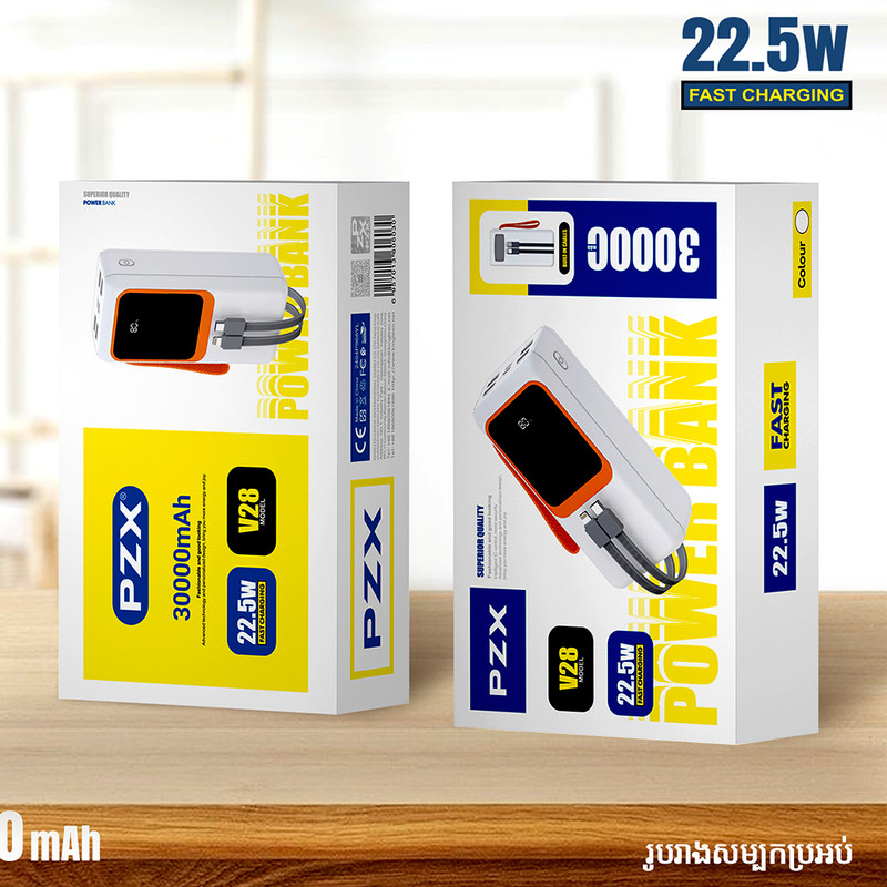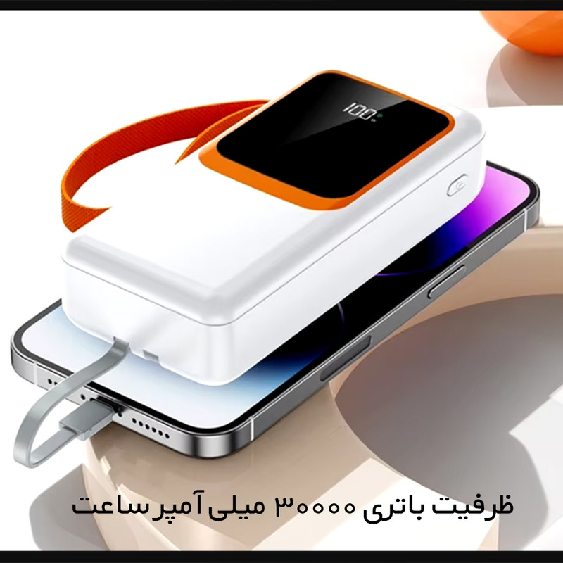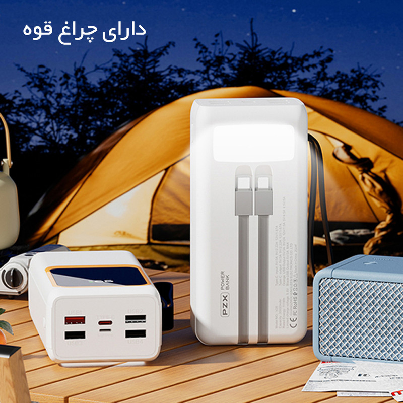 مشخصات فنی: برند معتبر PZX - ظرفیت 30هزار میلی آمپر ساعت - پشتیبانی از شارژ سریع 22.5 وات - دارای 4 درگاه USB - دارای یک درگاه Type C - دارای یک درگاه لایتنینگ - دارای دو عد کابل متصل (لایتنینگ و تایپ سی) - دارای چراغ قوه - دارای بند آویز