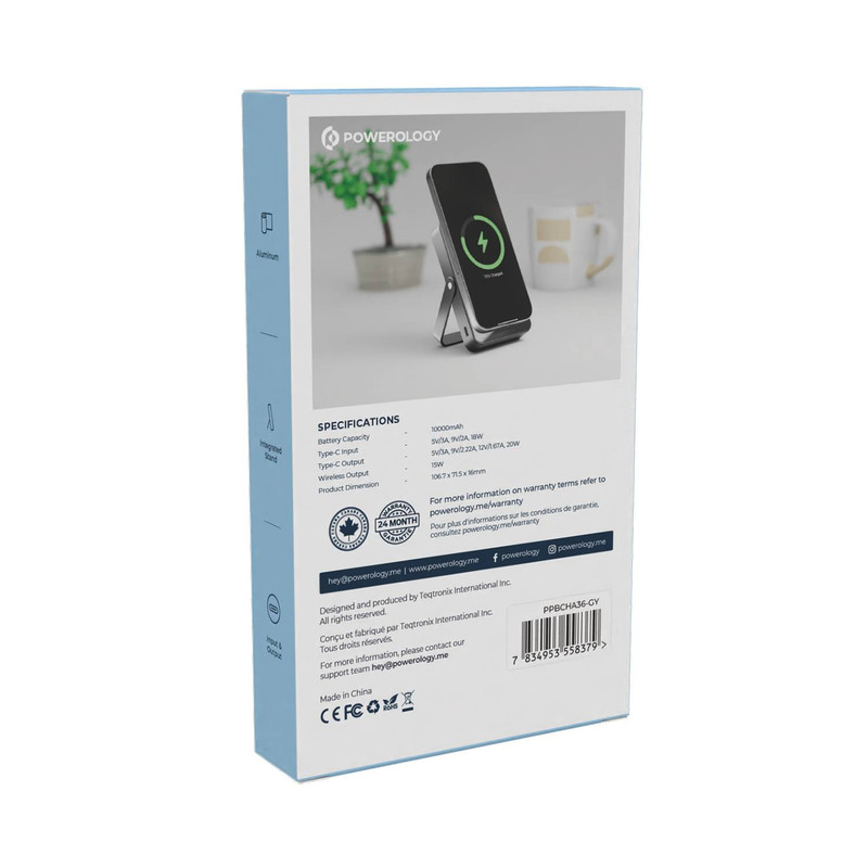 مشخصات فنی: ظرفیت باتری: 10000 میلیآمپر ساعت جنس: آلومینیوم خروجی بیسیم: 15 وات فناوری شارژ سریع (Power Delivery): 20 وات ورودی Type-C: 18 وات سطح شیشهای پایه داخلی یکپارچه ورودی و خروجی Type-C