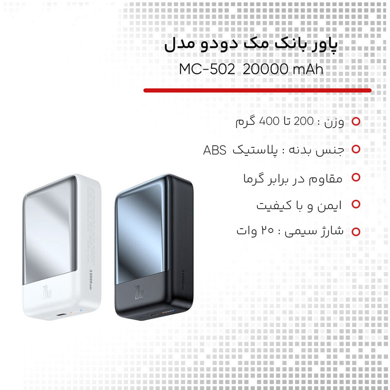 مشخصات فنی: Type-C Input: 5V⎓3A | 9V⎓2 A