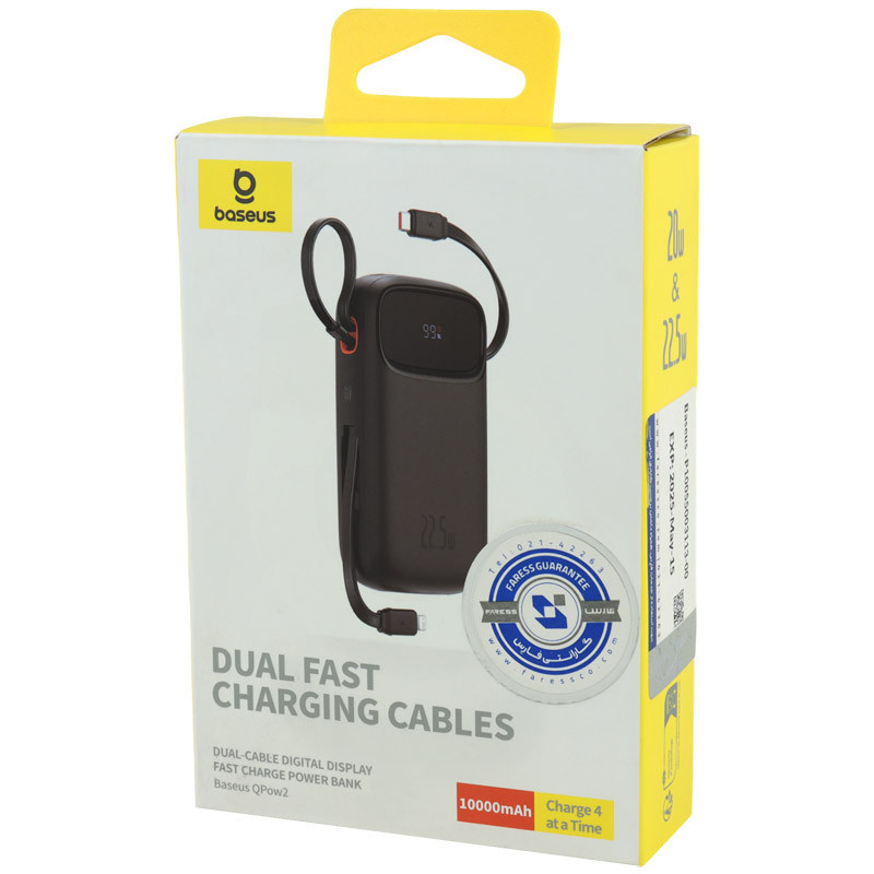 مشخصات فنی: کابل داخلی USB-C: (فقط برای دستگاههای اندروید) 22.5 وات کابل داخلی Lightning: (برای دستگاههای iOS) 20 وات پورت USB-C: خروجی 20 وات و ورودی 18 وات پورت USB-A: خروجی 12 وات