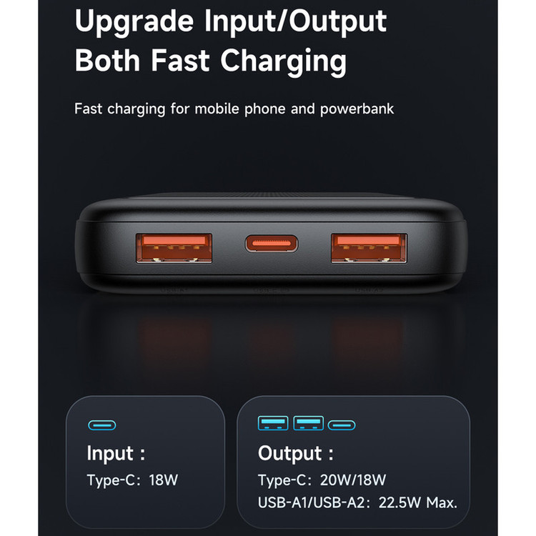 مشخصات فنی: USB A1/A2 output : 4.5V⎓5A,5V⎓4.5A,5V⎓3A,9V⎓2A,12V⎓1.5A,22.5W Max.