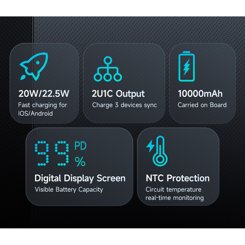 مشخصات فنی: USB A1/A2 output : 4.5V⎓5A,5V⎓4.5A,5V⎓3A,9V⎓2A,12V⎓1.5A,22.5W Max.
