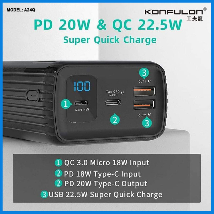 پاوربانک کانفلون مدل A24Q ظرفیت 50000 میلی آمپر ساعت