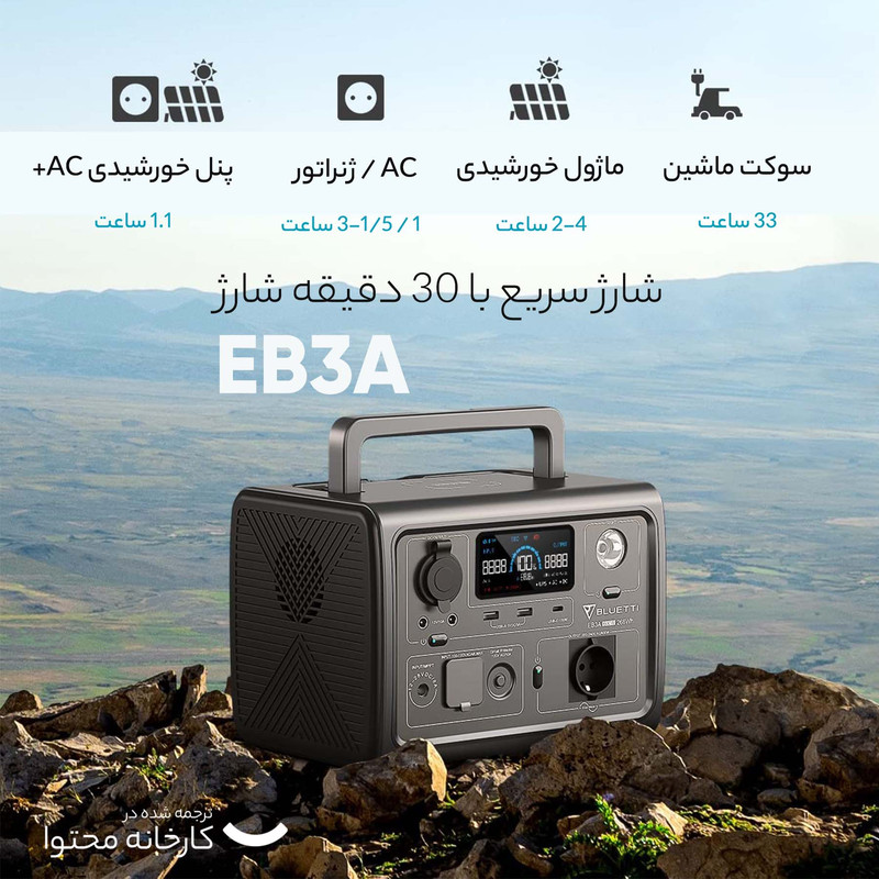 از کمپینگ RV گرفته تا اکتشاف در بیابان بدون ترس از از دست دادن قدرت، در هر زمان برای زندگی خارج از شبکه بروید. BLUETTI EB3A را می توان به هر طریق ممکن شارژ کرد، یا از طریق AC، پنل های خورشیدی، ماشین، ژنراتور، AC+Solar یا AC+Adapter، و تنها خیالتان را در جاده راحت می کند.