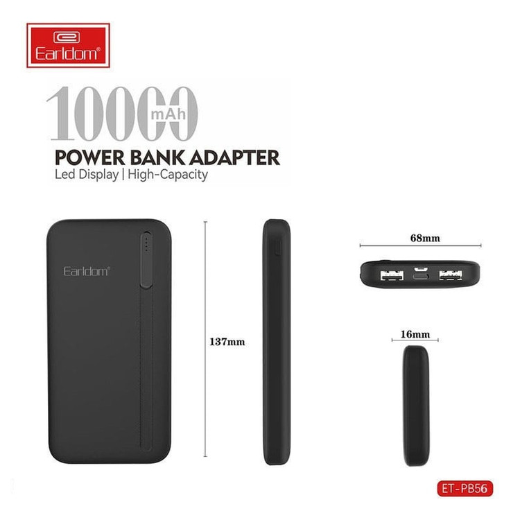 پاور بانک ارلدم مدل PB56 ظرفیت 10000 میلی آمپر برساعت