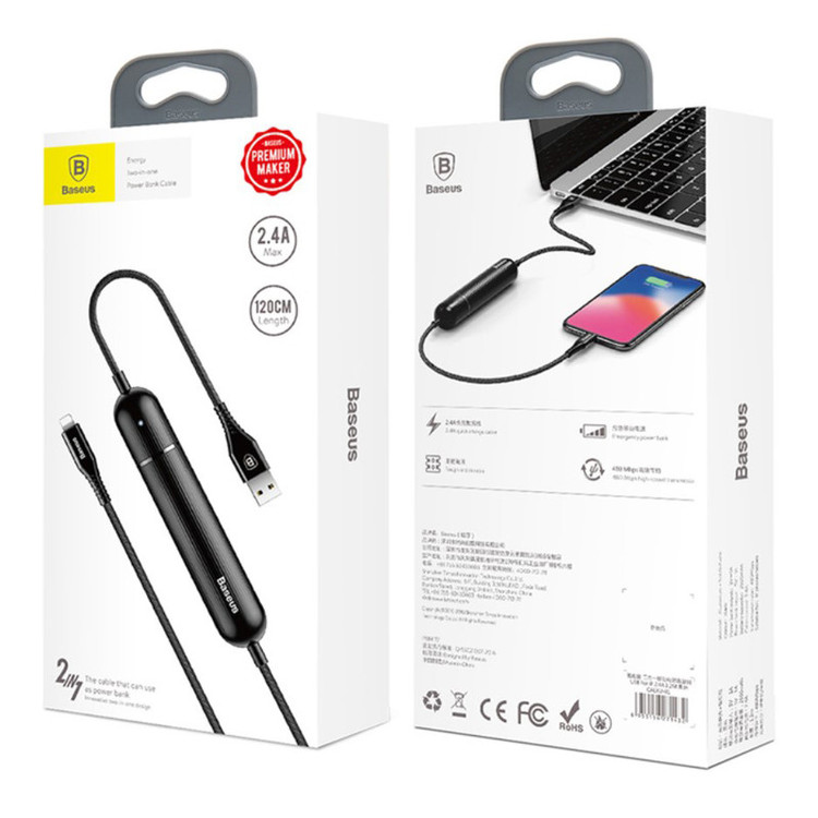 مشخصات فنی: پاوربانک 2 در 1 با کابل شارژ 1.2 متری لایتنینگ