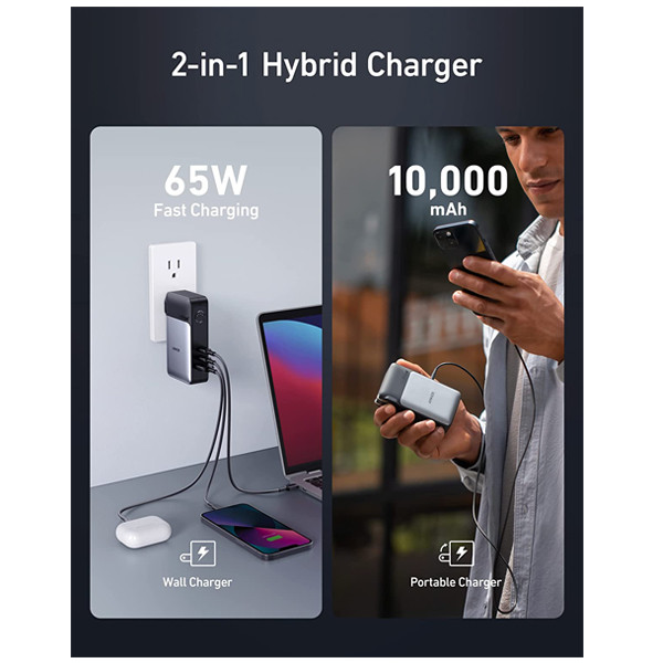 خروجی: حداکثر 65 وات تعداد پورت: 2 پورت USB-C تعداد پورت: 1 پورت USB-A تعداد خروجی ها: 3