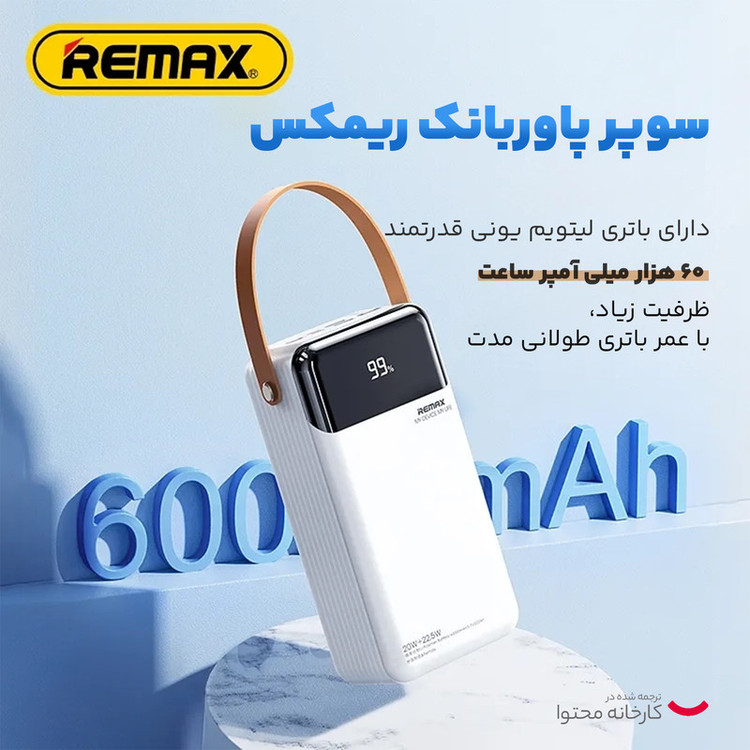 مشخصات فنی: ظرفیت باتری 60000 میلی آمپر ساعتی نمایشگر دیجیتال LED شارژ سریع 20 واتی از طریق درگاه Type-C شارژ سریع 22.5 واتی از طریق درگاه های USB ورودی 18 وات (حداکثر) چراغ LED پشتیبانی از شارژ چندین دستگاه به طور همزمان