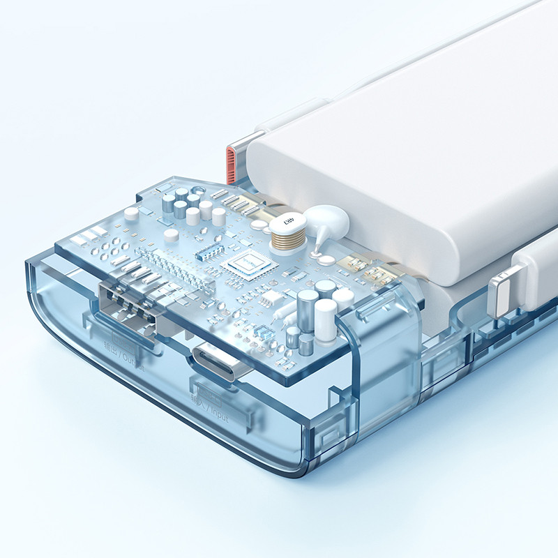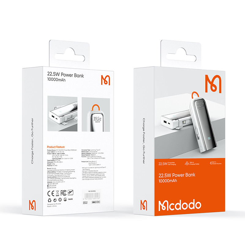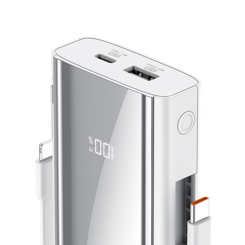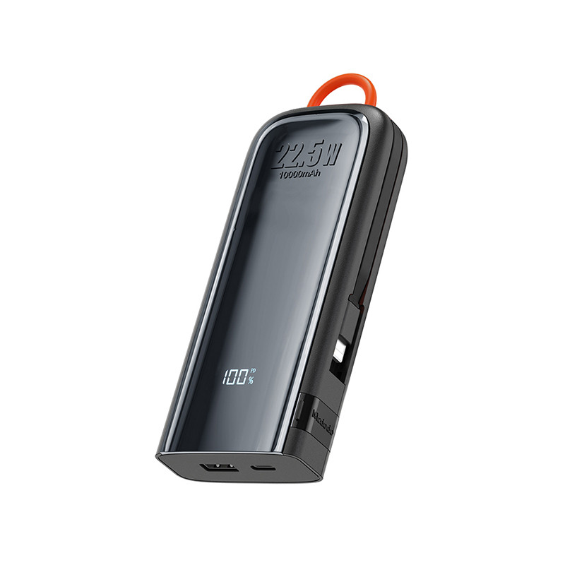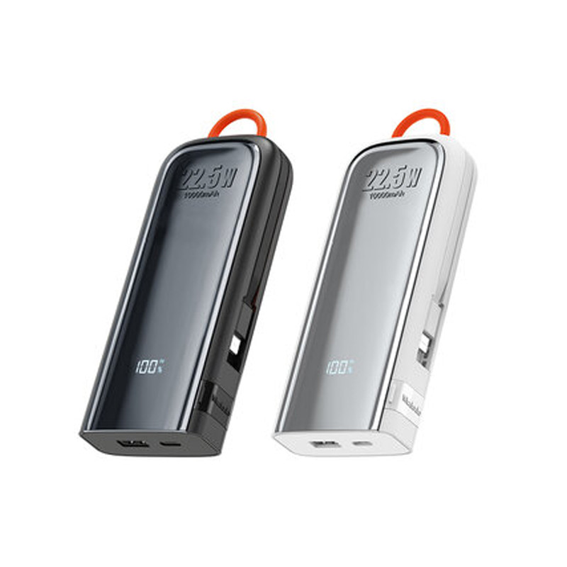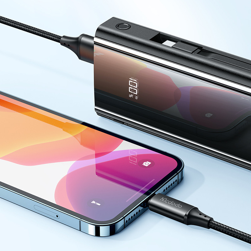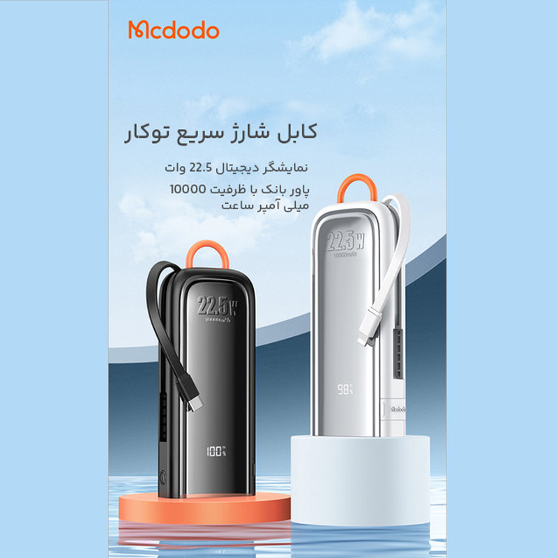 دارای کابل متصل به بدنه لایتنینگ و تایپ سی شارژ سریع با توان 22.5 وات دارای خروجی USB.A